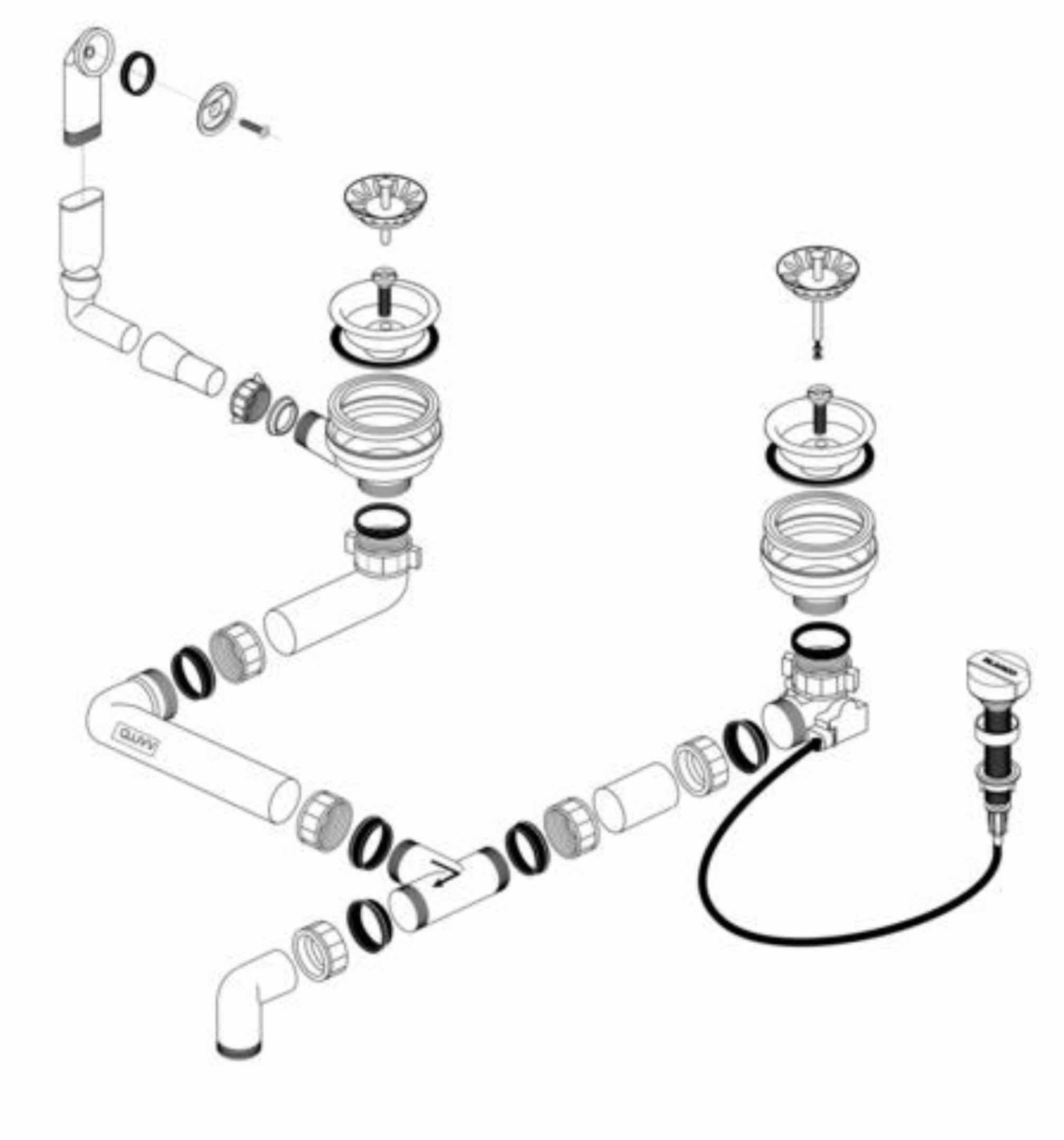 BLANCO Ablaufgarnitur 2 x 3,5'' Sieb mit Ablauffernbedienung Überlauf rund Artikelnummer 218407