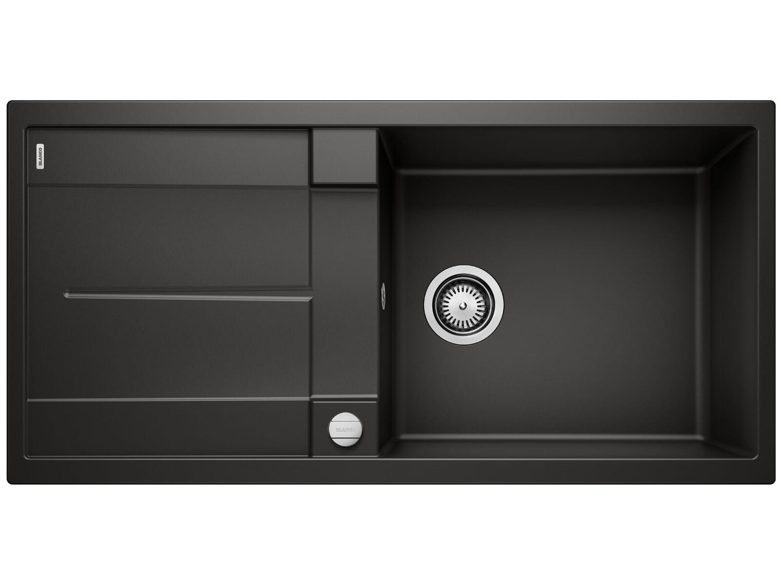 Lieferumfang | Blanco Metra XL 6 S - 525931 Granitspüle Schwarz, Ablaufgarnitur mit Raumsparrohr, 3 ½'' Korbventil mit Ablauffernbedienung (Drehbetätigung), |