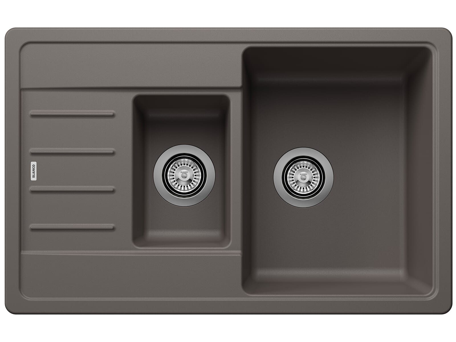 Lieferumfang | Blanco Legra 6 S Compact Vulkangrau - 527 270 Granitspüle, Ablaufgarnitur mit Raumsparrohr, 2 x 3 ½'' Korbventil, |