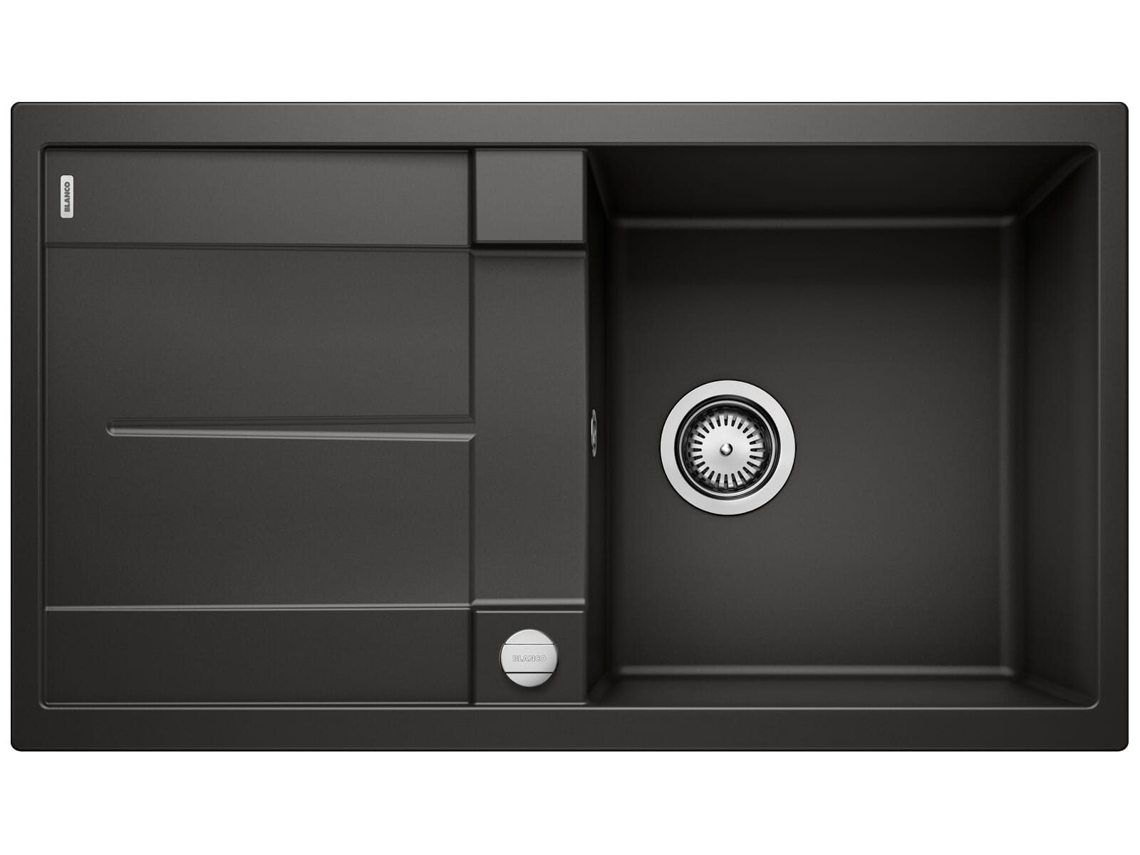 Lieferumfang | Blanco Metra 5 S - 525918 Granitspüle schwarz, Ablaufgarnitur mit Raumsparrohr, 3 ½'' Korbventil mit Ablauffernbedienung (Drehbetätigung), |