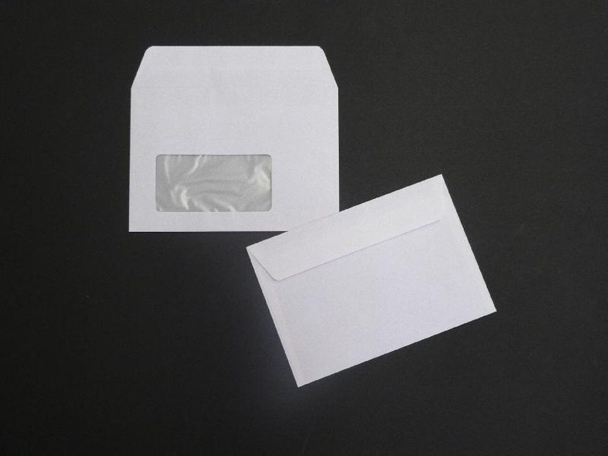 Blanke Briefhüllen Briefumschlag Briefumschläge C6 80g/qm haftklebend Fenster VE=1000 Stück weiß.