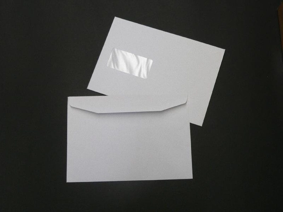 Blanke Briefhüllen Briefumschlag Kuvertierhüllen 176x250mm (DIN B5) 80g/qm gummiert Fenster VE=500 Stü.