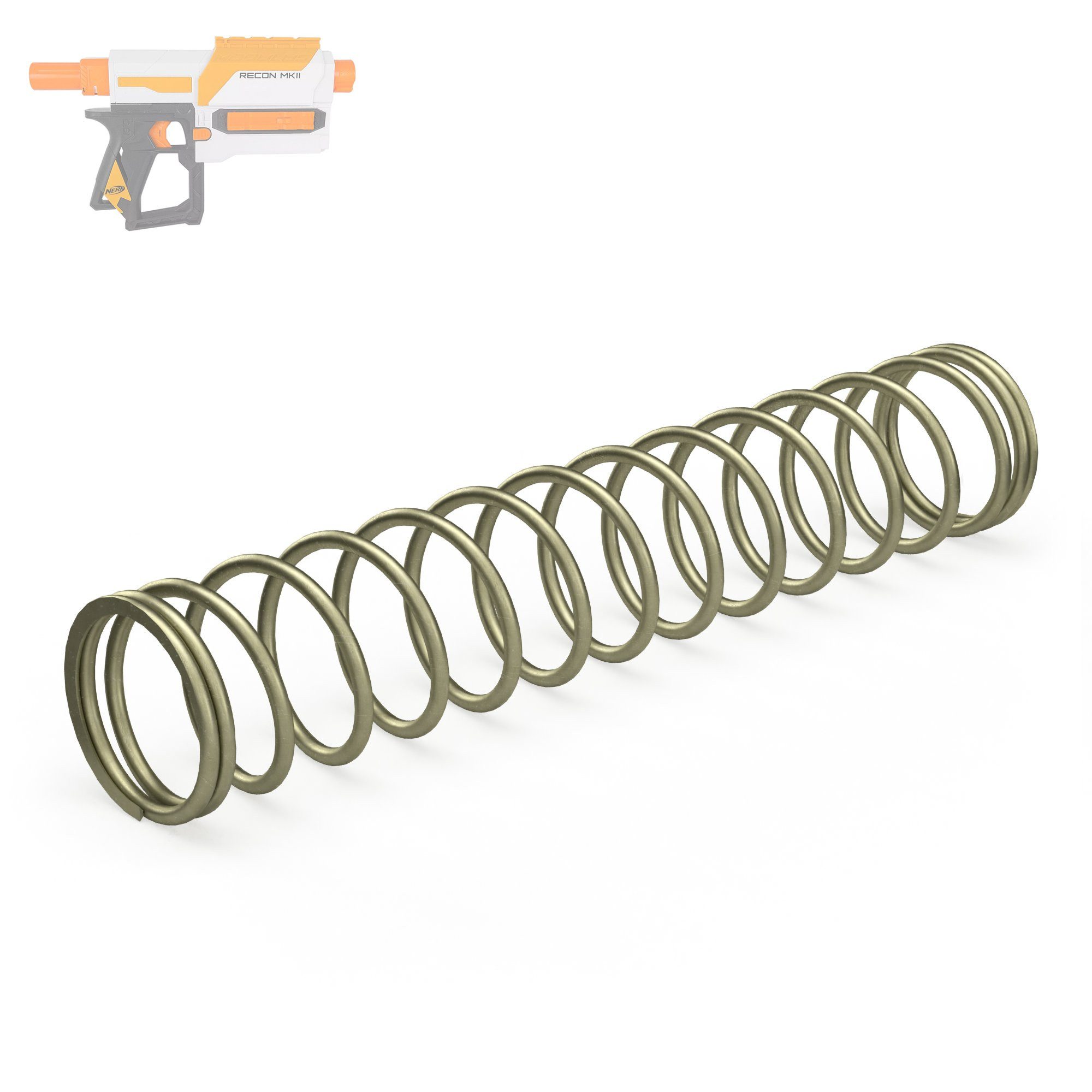 Mach dich bereit für Zahlen, die unglaublich klingen, aber wahr sind: Diese Feder katapultiert die Reichweite deiner Recon MKII um sage und schreibe 120 % nach vorn und steigert die Mündungsgeschwindigkeit um atemberaubende 150 %. Deine Darts werden mit einer solchen Geschwindigkeit und auf eine solche Distanz fliegen, dass deine Gegner nicht wissen werden, wie ihnen geschieht. Dein Blaster sieht nicht nur aus wie ein Profi-Gerät – er schießt auch so.