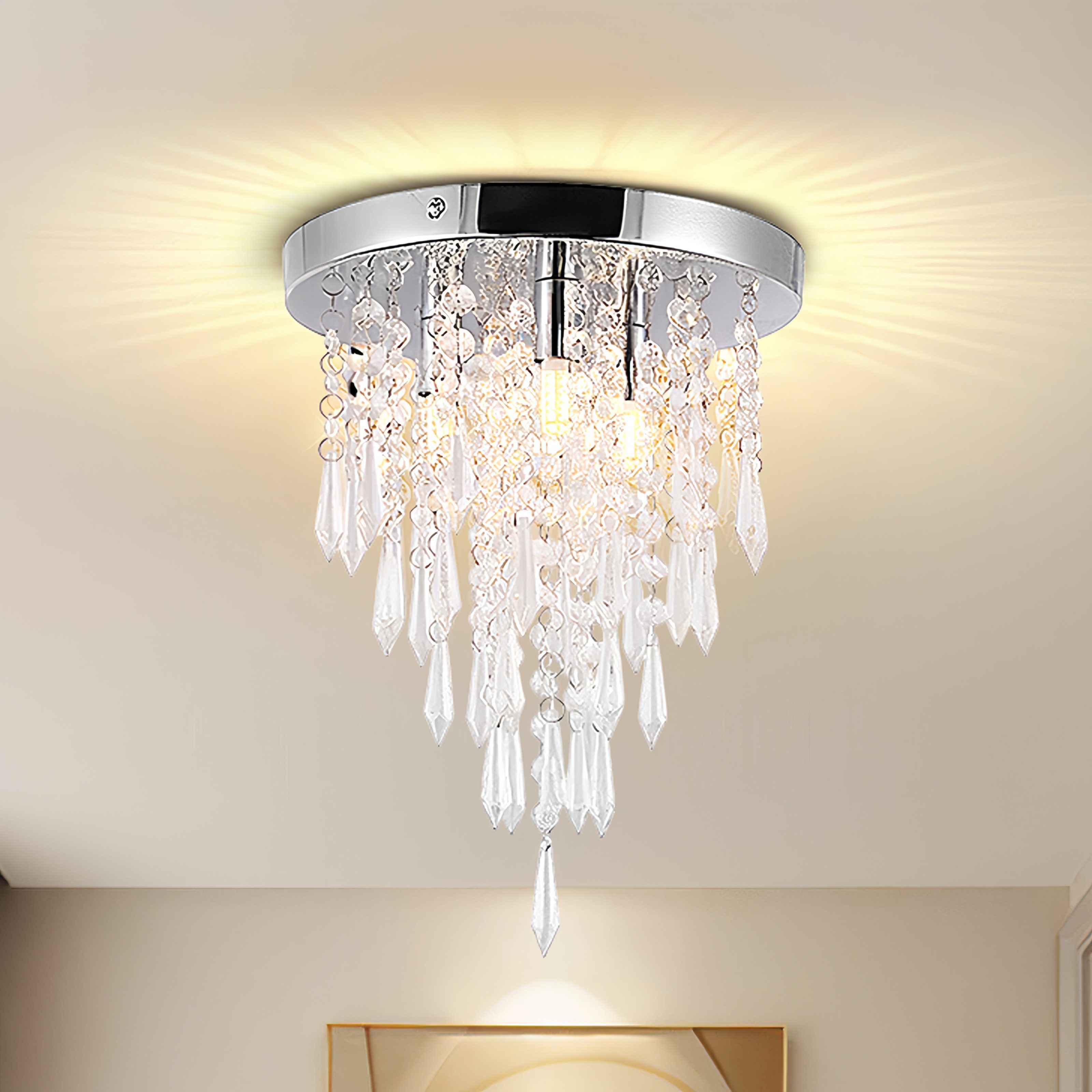 Die Kombination aus hochwertigem K9-Kristall und silberner Metallbasis verleiht der Deckenlampe einen luxuriösen, modernen Look. Das funkelnde Kristallglas reflektiert das Licht brillant und sorgt für eine elegante, dynamische Atmosphäre – ideal für Wohnzimmer, Esszimmer oder Flure.