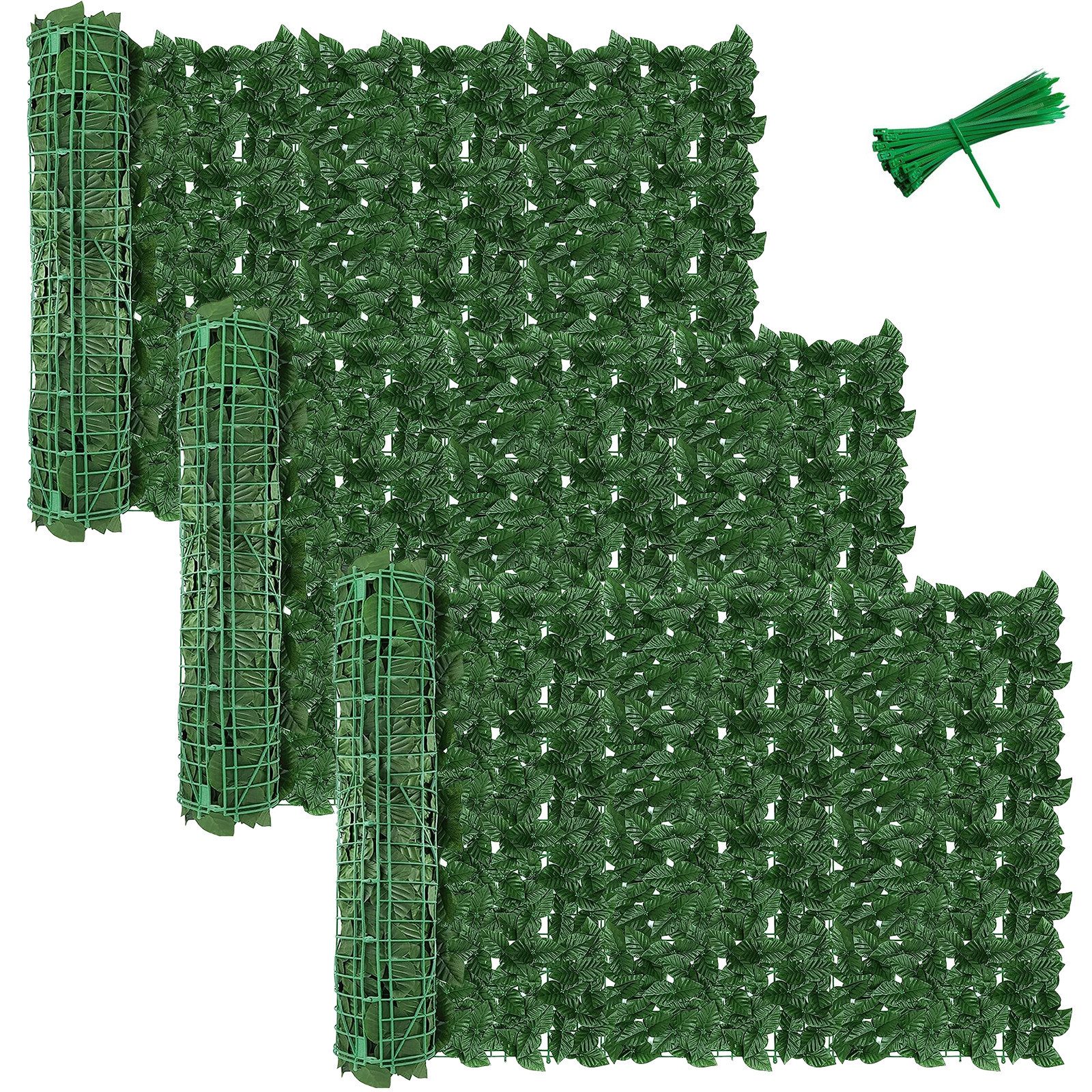 100 % Blockierung bietet keine Durchsicht, volle Privatsphäre, bedeckt mit hochdichtem Efeu und der zusätzlichen Netzrückseite, beide sind fest mit der Rahmenplatte verbunden, verhindern das Herunterfallen von Blättern erheblich.