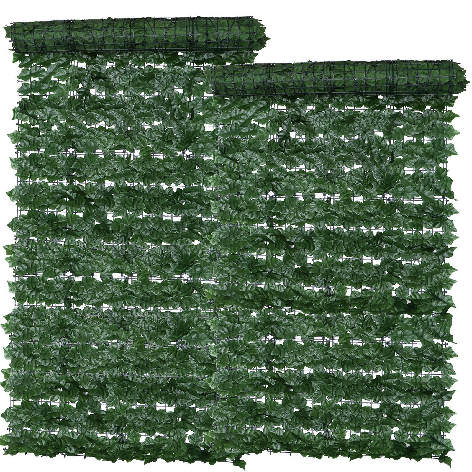 100 % Blockierung bietet keine Durchsicht, volle Privatsphäre, bedeckt mit hochdichtem Efeu und der zusätzlichen Netzrückseite, beide sind fest mit der Rahmenplatte verbunden, verhindern erheblich das Herunterfallen von Blättern.