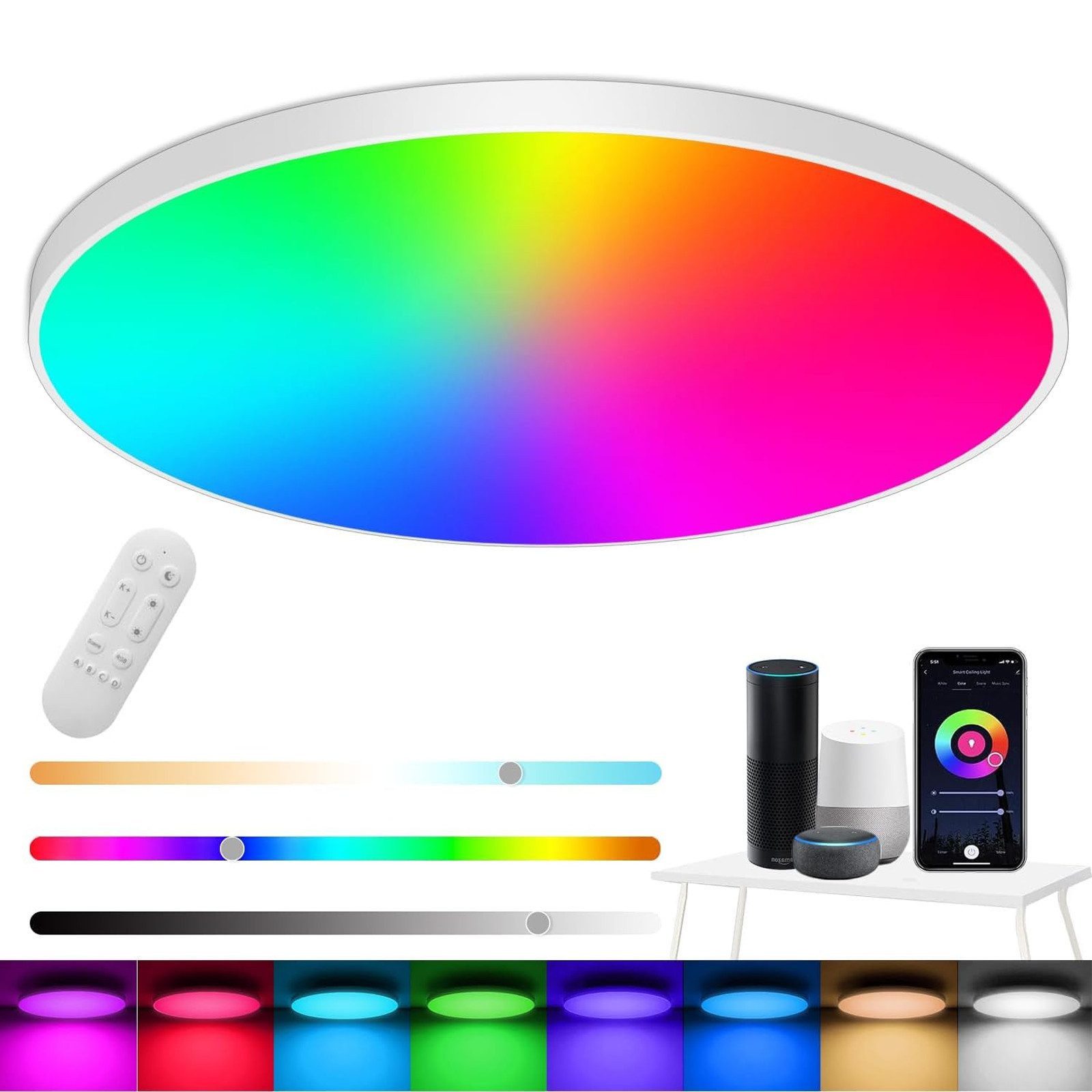 Vielfältige Steuerungsoptionen - Diese Deckenleuchte unterstützt eine Vielzahl von Steuerungsmethoden, einschließlich der "Smart Life" und "Tuya Smart" Smartphone-Anwendungen sowie der Kompatibilität mit Google Assistant und Alexa. Mit einfachen Sprachbefehlen können Sie die Beleuchtung ein- und ausschalten, die Farben ändern, die Helligkeit anpassen und Szenen einstellen. Laden Sie einfach die "Smart Life" App herunter und verbinden Sie sie mit Ihrem Wi-Fi-Netzwerk, um Ihre Beleuchtung jederzeit und überall vollständig zu kontrollieren.