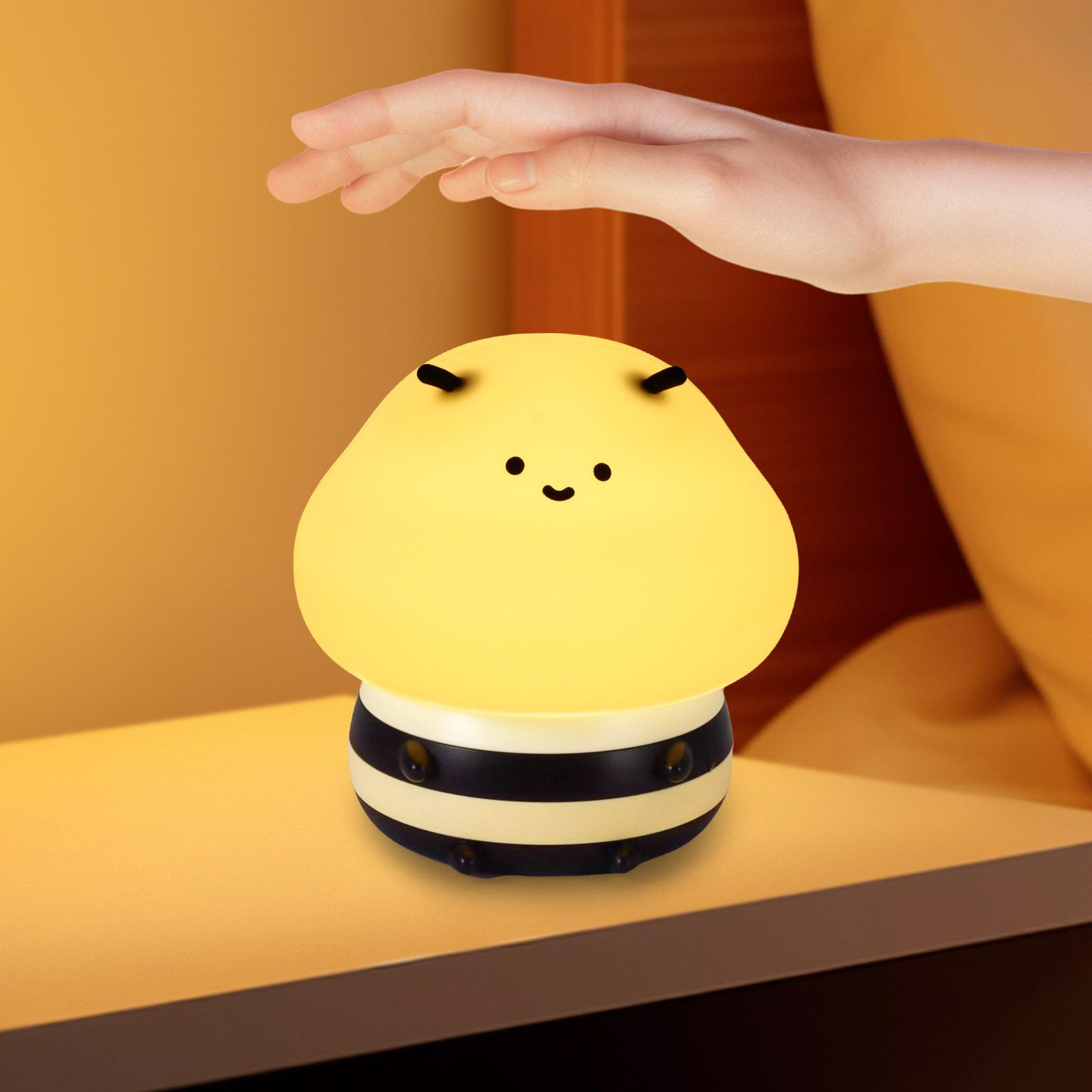 BlingBin LED Nachtlicht Cute LED Nachttischlampe, Baby Stilllicht, Silikon Touch Nachtlampe, Dimmbar und Wiederaufladbare, LED fest integriert, Warmweiß, Touch Bee Nachttischlampe, Deko Licht für Kinderzimmer Schlafzimmer