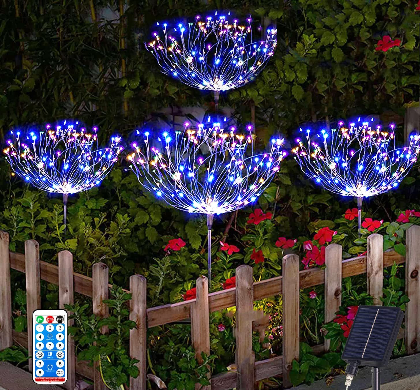 Wissenswertes | Gartendekoration Solar-Gartenleuchte für draußen, 4 x 120 LED-Solar-Feuerwerkslichter mit Fernbedienung, 8 Modi, Gartenstecker-Solarleuchten, wasserdichte Solarlampen für Garten, Rasen, Terrasse |