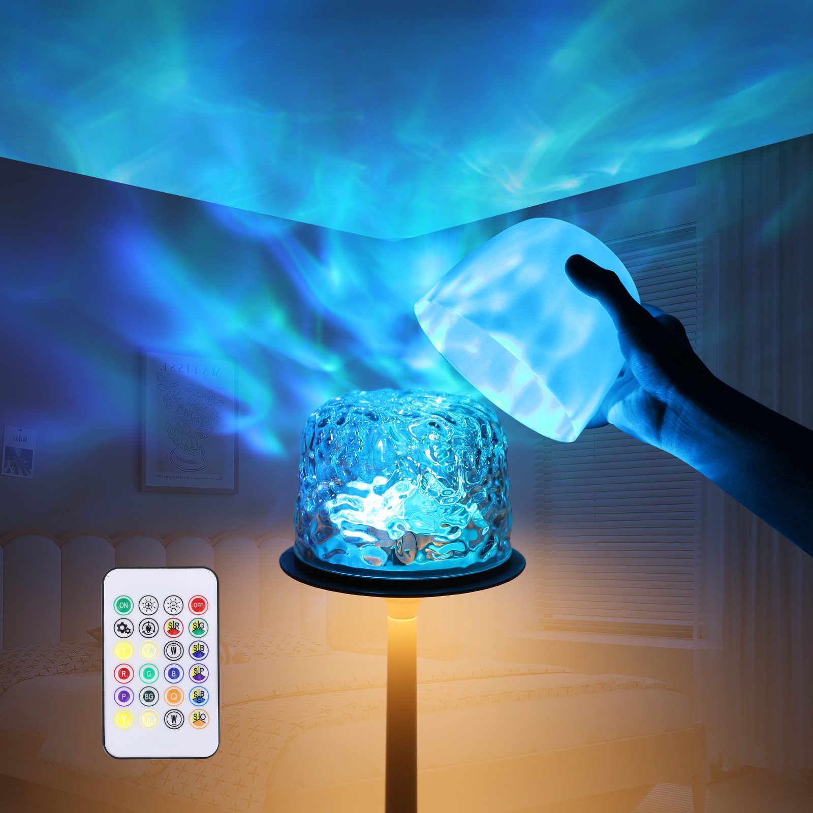 Das wellenbeleuchtete Nachtlicht verfügt über eine berührungsempfindliche Steuerbasis für einfache Bedienung per Fingertipp. Wählen Sie bequem per RGB-Fernbedienung aus 16 Farbvariationen und passen Sie die Helligkeit an – so kreieren Sie mühelos die perfekte Stimmung für jeden Moment.