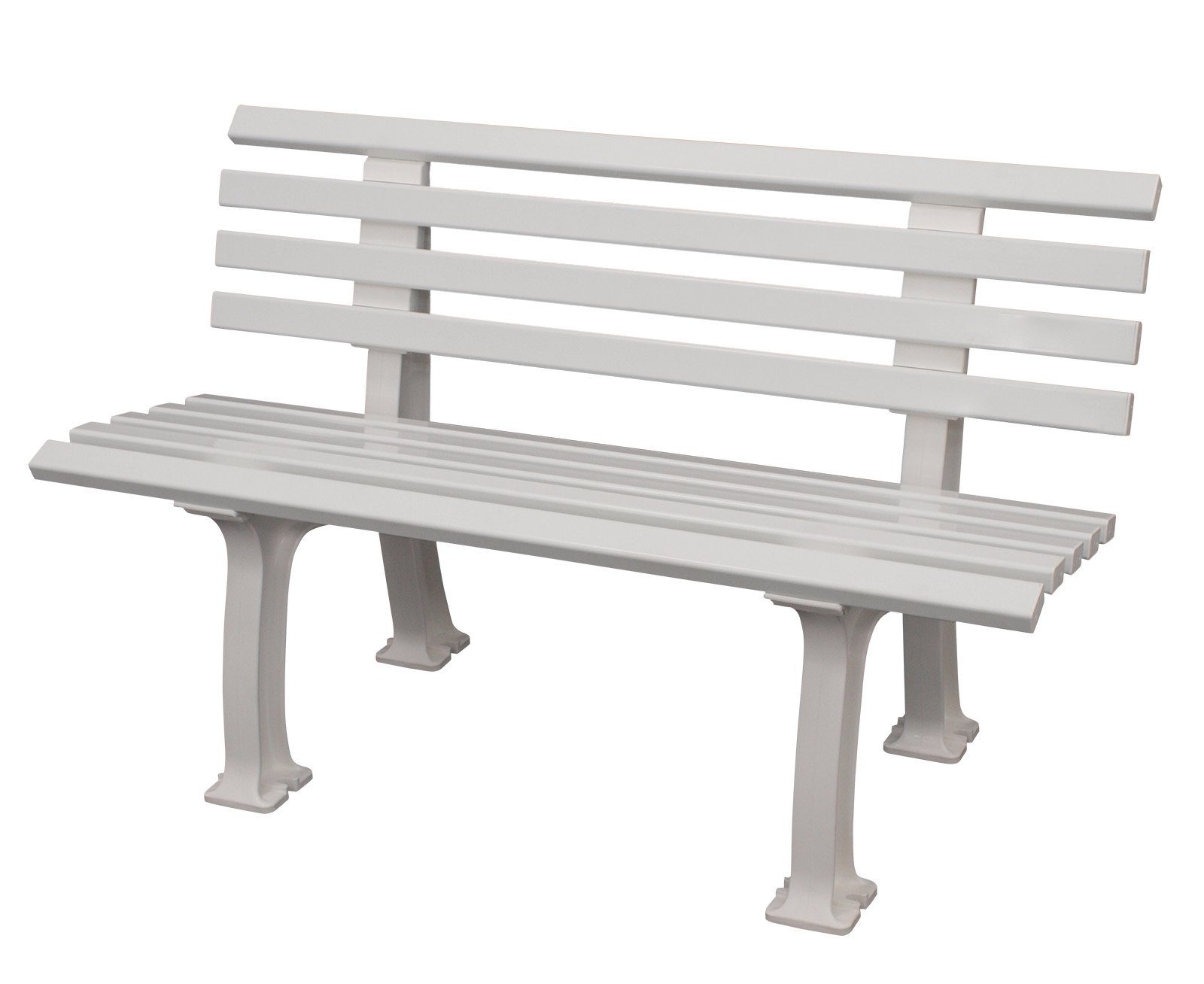 Wetterfeste Parkbank IBIZA 2-sitzer in weiss, aus bruch- und frostfestem Kunststoff. Die Bank ist wartungsfrei und benötigt keine spezielle Pflege: Die Füße sind aus stabilem PP gefertigt und verfügen über Einkerbungen, an denen die Bank im Boden verankert / verschraubt werden kann. Die Latten (9 Mehrkammerprofile 50 x 30 mm) sind aus belastbarem PVC hergestellt. Maße: Breite: 120cm Sitzbreite: 120cm Tiefe: 54cm Sitztiefe: 38cm Höhe: 74cm Sitzhöhe: 44cm Stellfläche: 91x54cm Die grosszügigen Abmessungen ermöglichen ein bequemes Sitzen. Sämtliche Beschläge sind verzinkt/rostfrei.