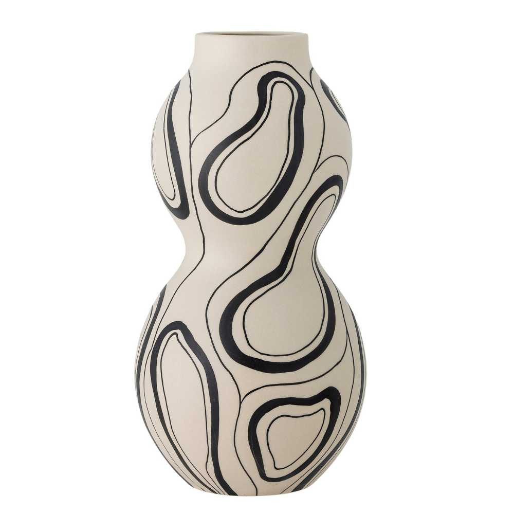 Die Bloomingville Vase Nicola überzeugt durch ihr stilvolles Design und ihre hochwertige Verarbeitung. Diese Vase aus Steingut ist ein wahrer Blickfang und bringt eine besondere Note in Dein Zuhause. Mit ihrer Höhe von 34 cm und dem organischen Muster in Schwarz ist sie ideal, um frische Blumen oder dekorative Zweige stilvoll in Szene zu setzen.