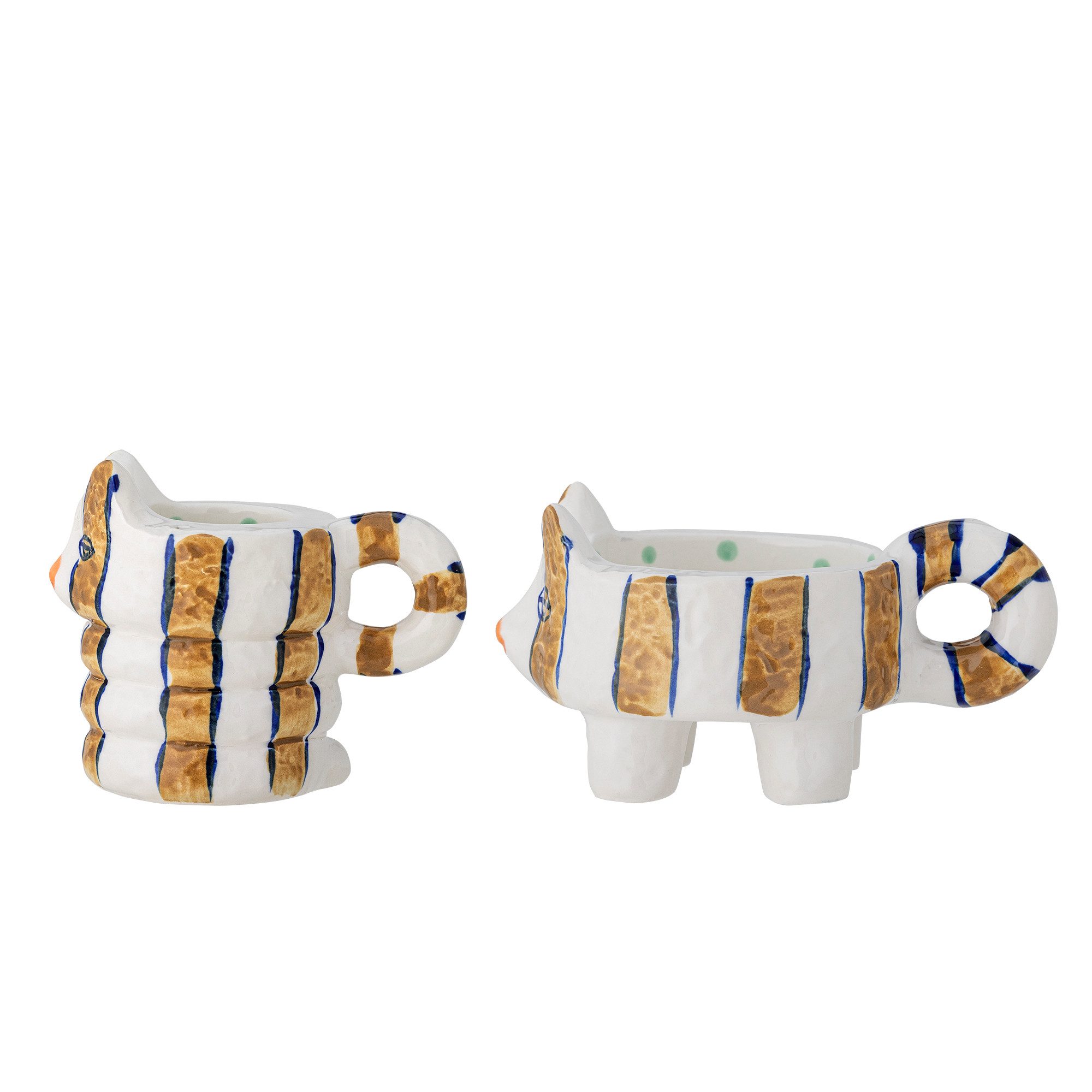 Das Bloomingville Caty Kerzenhalter Set besteht aus zwei handbemalten Kerzenhaltern in Katzenform und bringt eine fröhliche Note in jedes Zuhause. Mit ihren goldenen und blauen Streifen sind die Dekofiguren echte Hingucker. Ideal für alle, die verspielte Wohnaccessoires lieben und ihrer Einrichtung einen charmanten Akzent verleihen möchten.