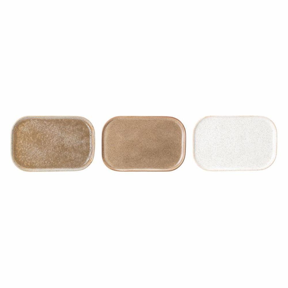 Dekoratives 3er-Set Teller aus Steingut in Weiß und Braun. Aufgrund der Beschaffenheit der Glasur und des handgefertigten Artikels können Farbabweichungen auftreten.
