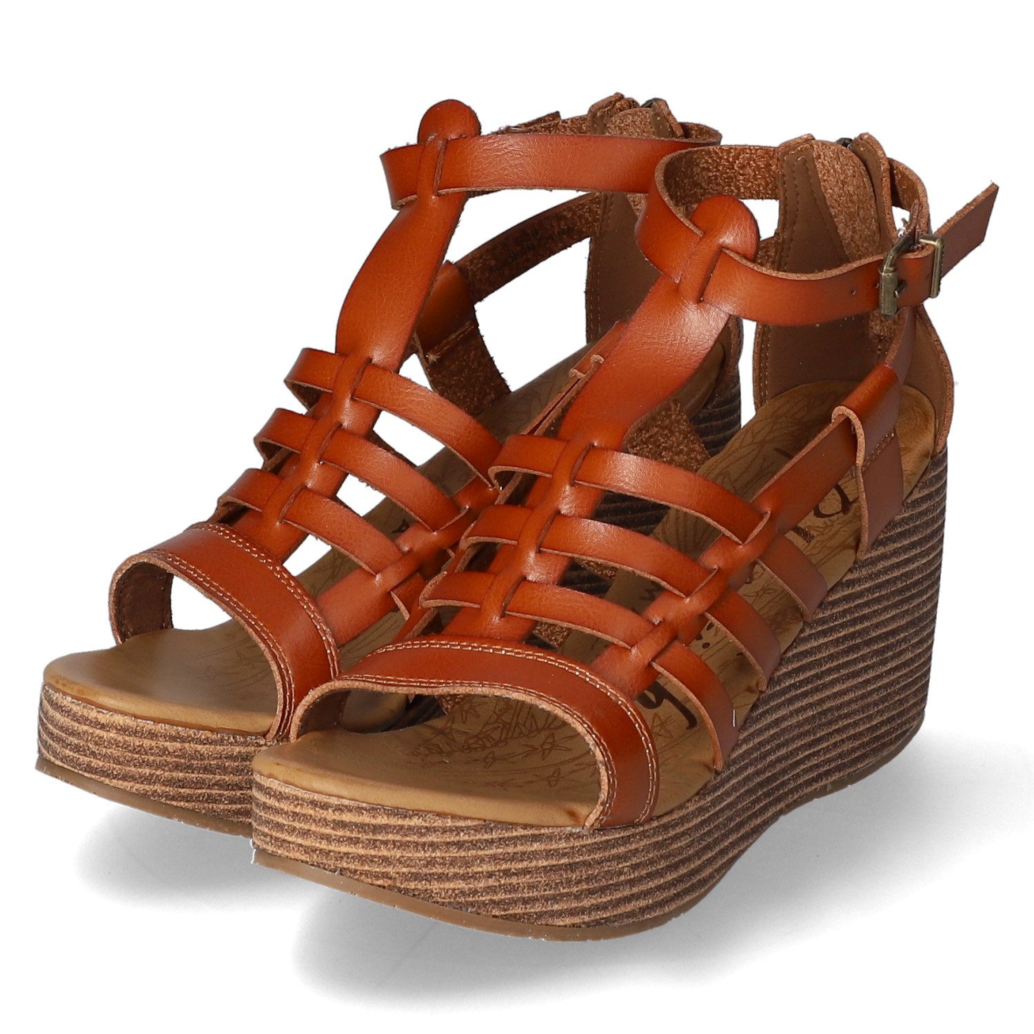 Blowfish Damen Riemchen-Sandalen/ Keil-Sandaletten PIPER Braun Kunstleder - verstellbarer Riemen mit Schnalle sowie ein Reißverschluss im Fersenbereich - leicht gepolsterte Decksohle - rutschhemmende Laufsohle - sichtbares gestepptes Logo am Fersenbereich