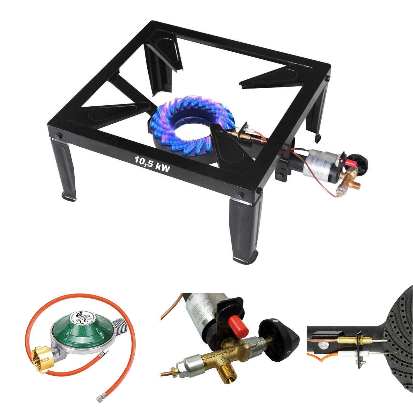 Lieferumfang | Hockerkocher 10,5 kW, Gasschlauch 150 cm, Outdoor-Gasdruckregler 50 mbar |