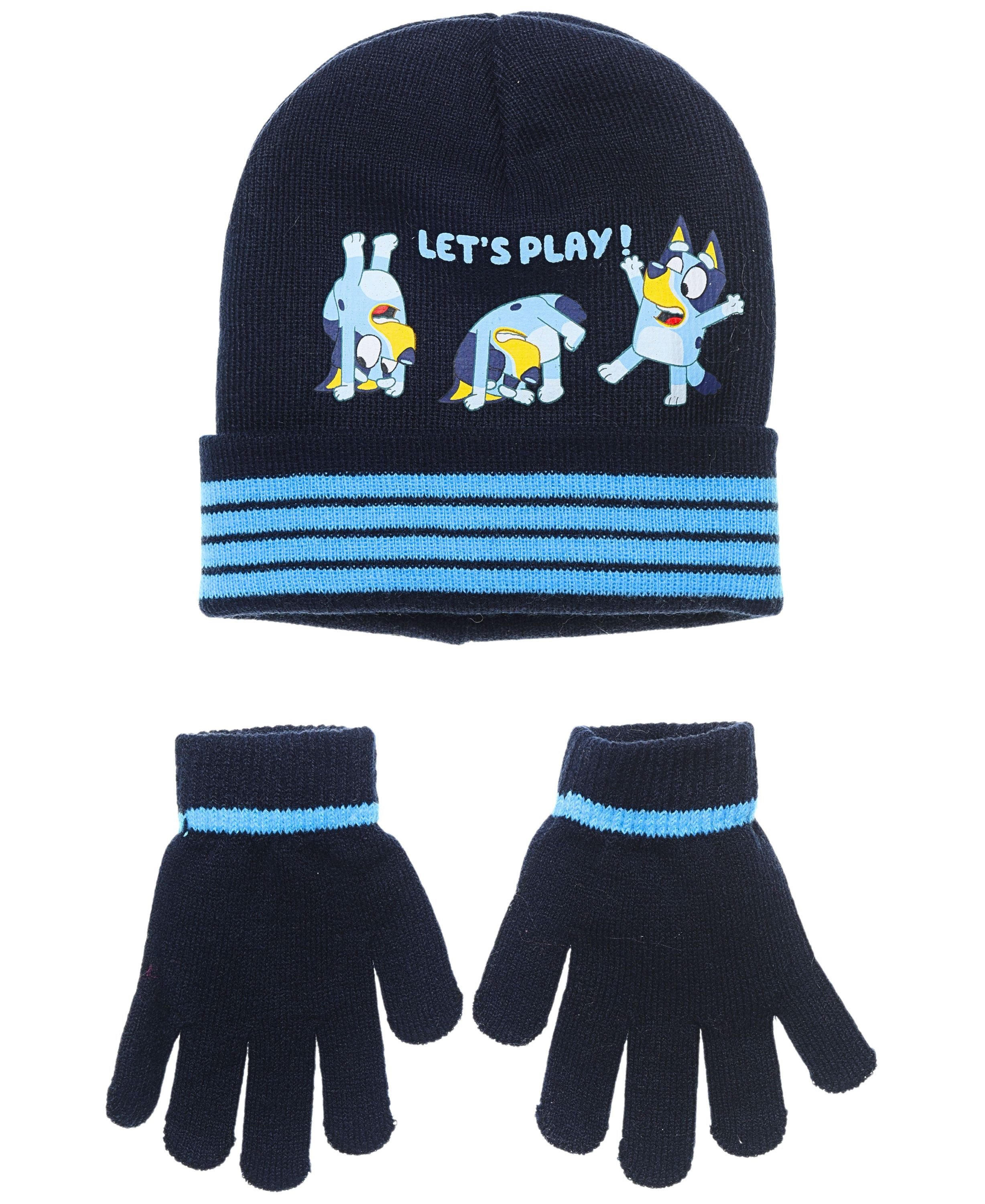 Die warme Mütze mit dem fröhlichen Aufdruck „Let’s Play!“ zeigt Bluey in Bewegung und sorgt für einen spielerischen Look. Die gestreiften Details am Rand verleihen der Mütze eine besondere Note. Passend dazu ergänzen die Handschuhe das Set und halten kleine Hände zuverlässig warm.