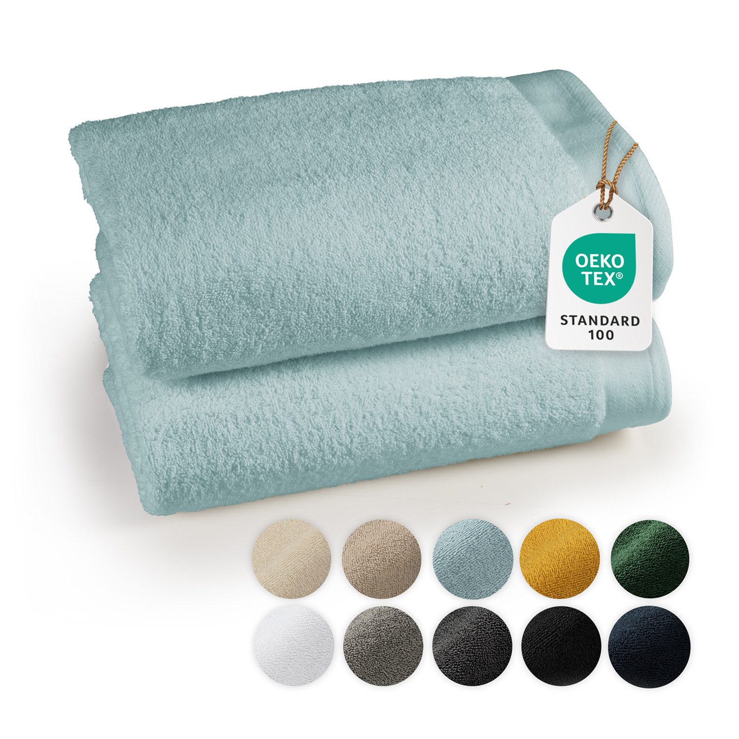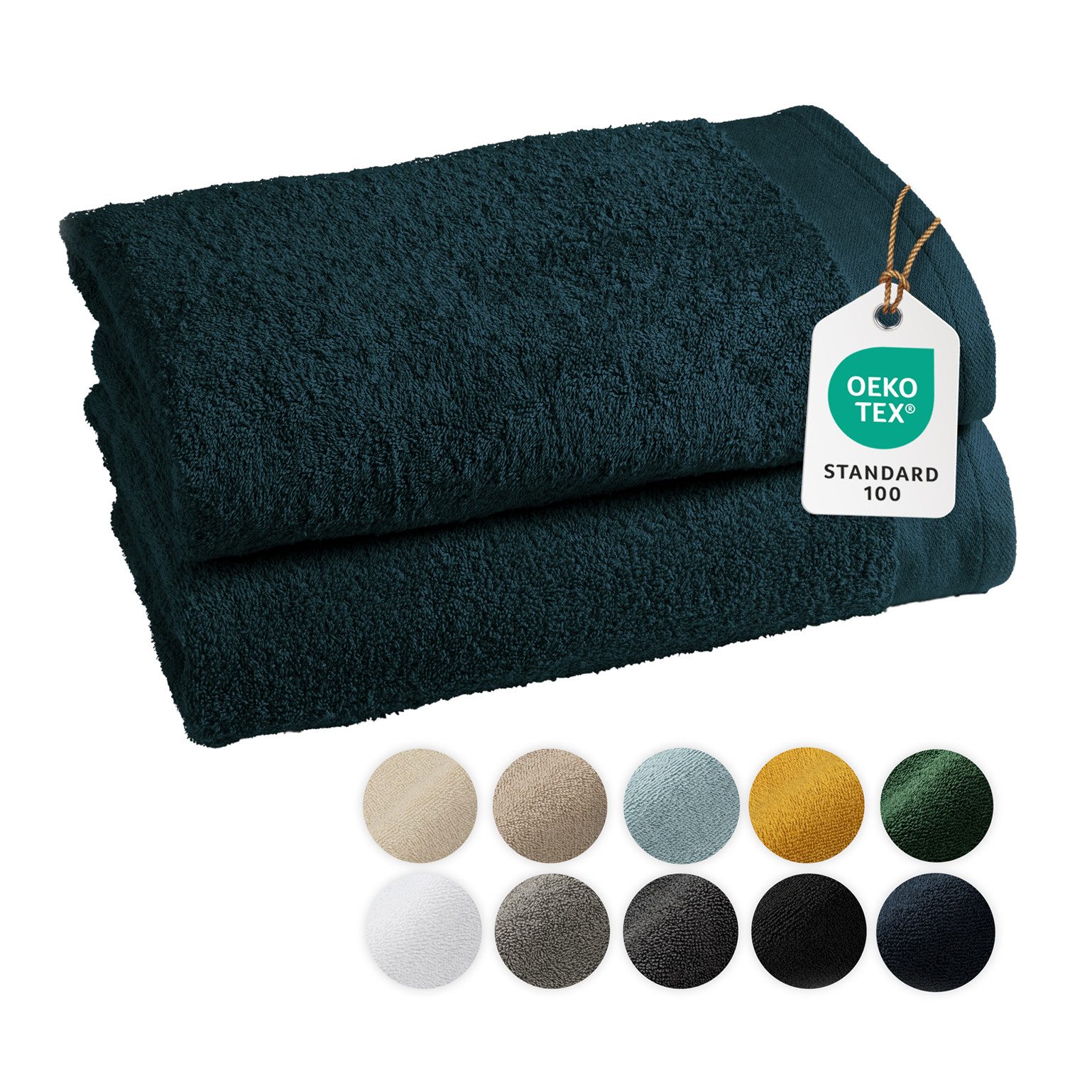 OEKO-TEX QUALIFIZIERT - Frottier-Handtuch Set geprüft nach STANDARD 100 by OEKO-TEX (Zertifikat-Nr.: 20.0.23116).