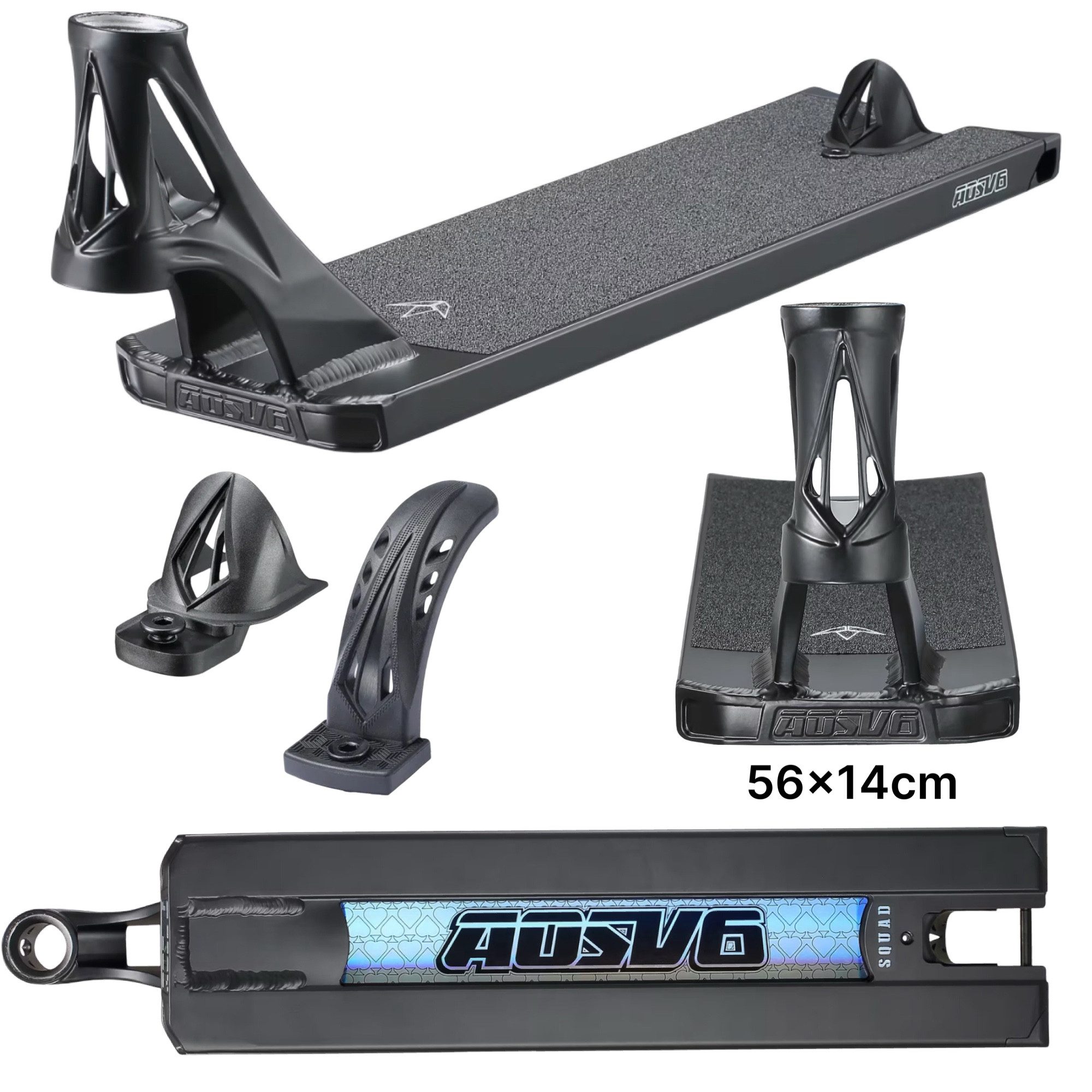 Das AOSV6 SQUAD Deck von Blunt & Envy ist ein hochwertiges Scooter-Deck, das für professionelle Fahrer entwickelt wurde. Mit einer Breite von 5,5 Zoll (140 mm) und einer Длина von 22 Zoll (559 mm) bietet es eine großzügige Standfläche für optimale Kontrolle und Stabilität. Das Deck wiegt 1,7 kg (3,75 lbs) und ist in den Farben Grau und Schwarz erhältlich.