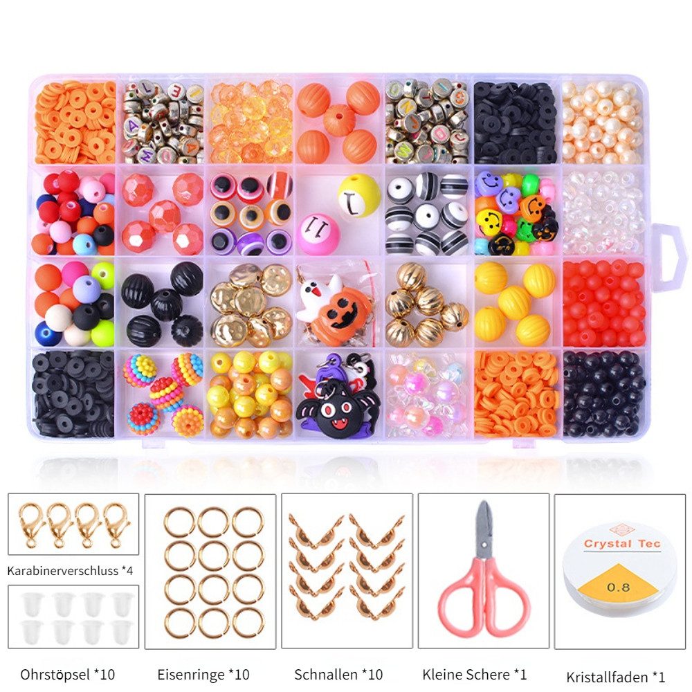 Dieses Set enthält verschiedene Halloween-Perlen und -Anhänger, darunter Geister, Kürbisse und Fledermäuse, die die festliche Atmosphäre perfekt einfangen.