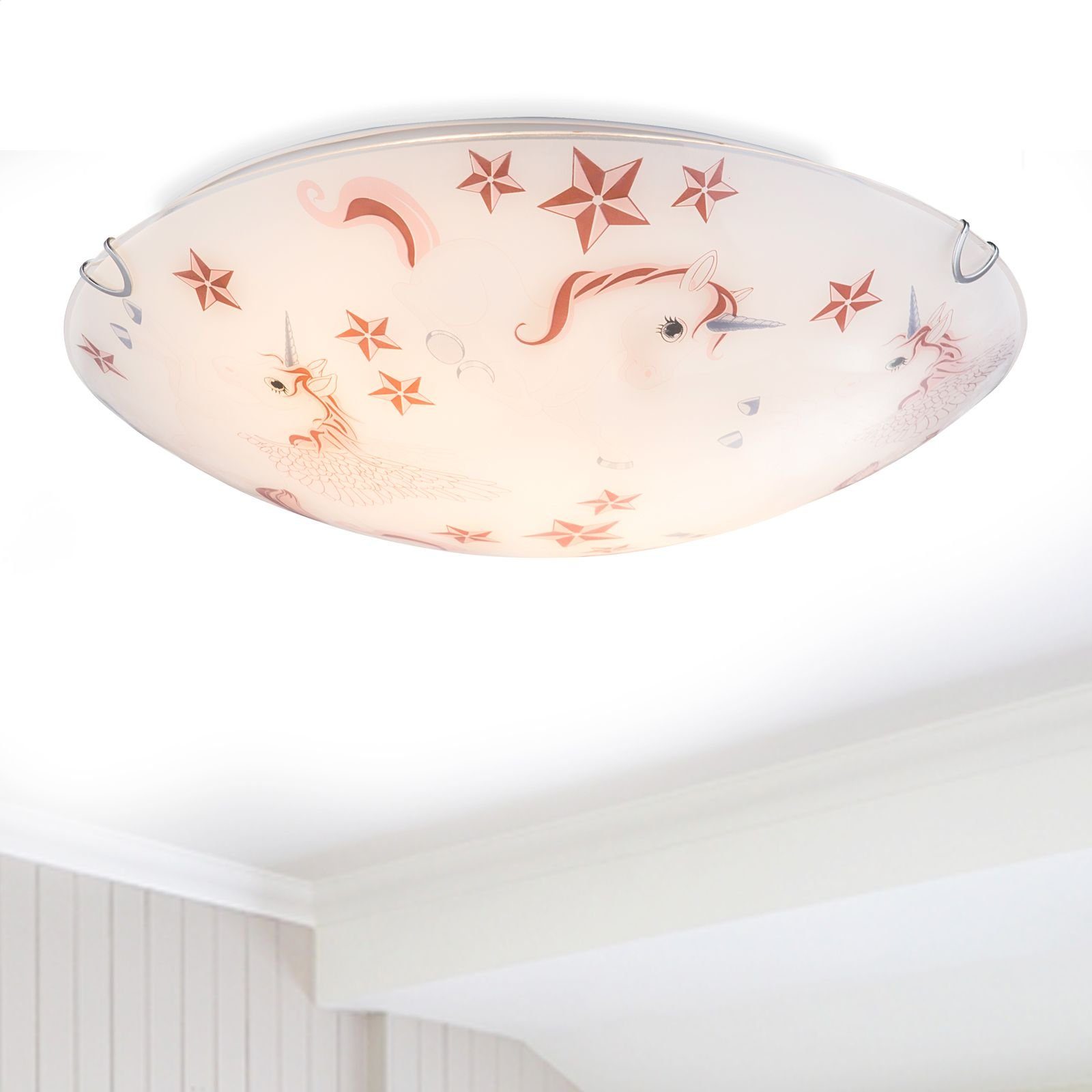 Deckenleuchte aus milchigem Glas mit Einhorn und Stern Motiven inkl. Pflegetuch