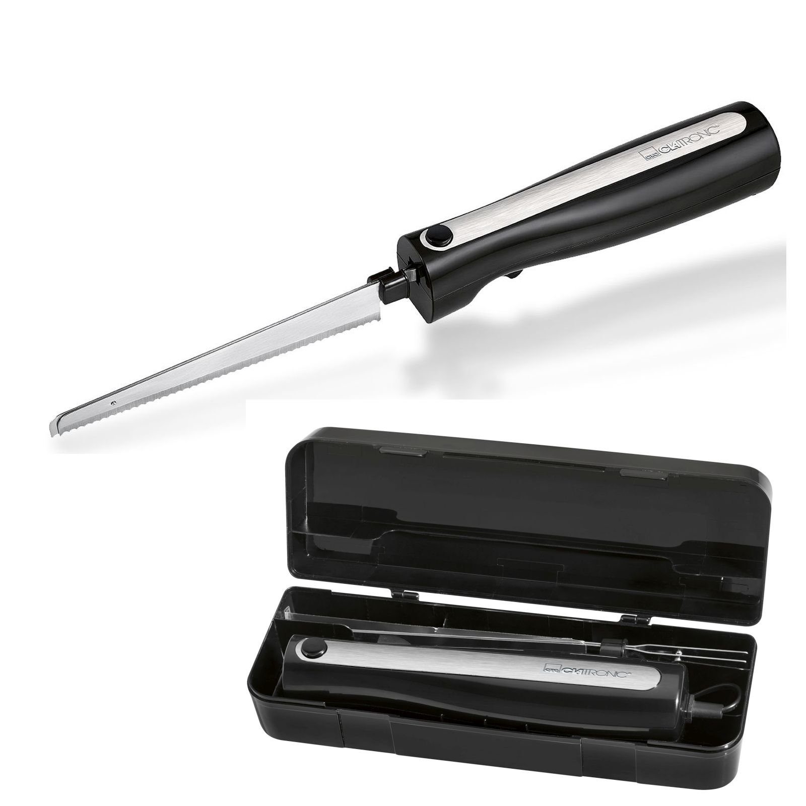 Elektro Messer mit kraftvollem 120-Watt-Motor und geräusch- und vibrationsarmen Lauf. Die spezialgezahnte Edelstahl-Mehrzweckklinge ermöglicht ein präzises Schneiden aller Lebensmittel inklusive Gefriergut. Dank einer Auslösetaste lassen sich die Klingen für die Reinigung mühelos entfernen, das Messer ist rostfrei und für die Spülmaschine geeignet. Das elektrische Messer wird mit einer Aufbewahrungsbox geliefert.