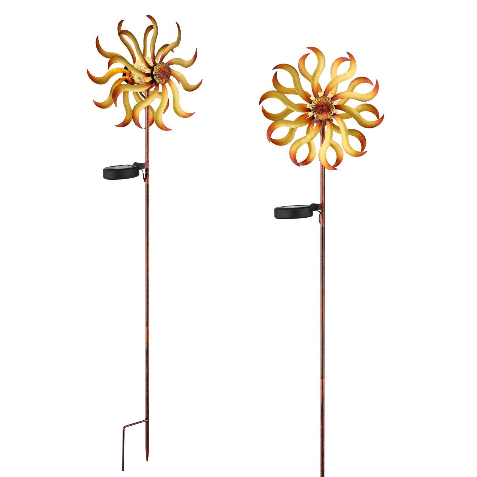 Die Solarleuchten Metall Goldfarben Patiniert sind ein stilvolles Highlight für jeden Garten oder Außenbereich. Mit eleganten Windrad auf einem Erdspitz vereinen diese Leuchten ein charmantes Design und moderne Solar-Technologie.