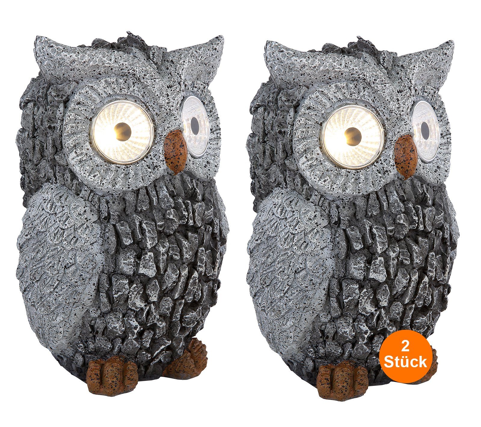 LED Solarleuchte 2er Set Deko Gartenleuchte graue Eule