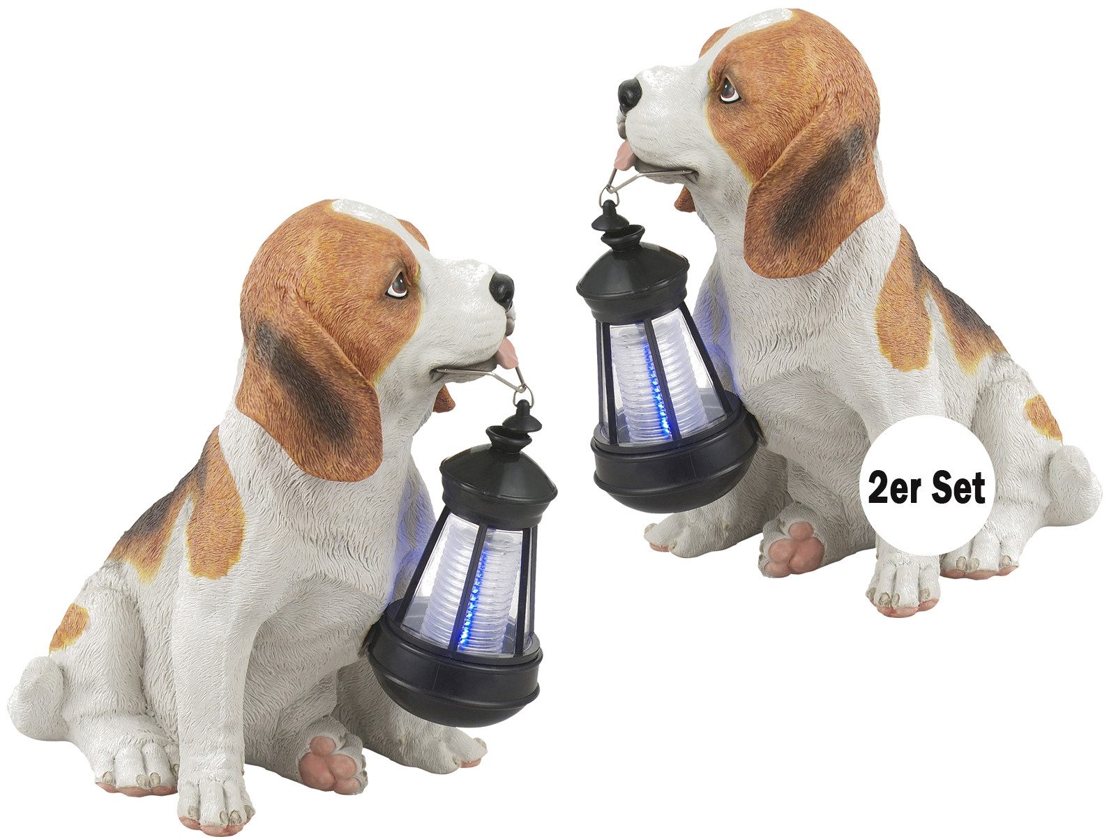 Wissenswertes | SOLARLAMPE - 2er SET - HUND Eine nette Dekorationsmöglichkeit sind diese Solarlampen aus braun weißen Kunststoff. Durch die Form eines Hundes welcher eine Laterne in seinem Mund hat, fällt einem diese Lampe sofort ins Auge. Durch die IP44 Schutzart ist die 25 cm große Lampe auch absolut für den Außenbereich geeignet. LED Solarlampen Hund aus Kunststoff weiß/braun. Mit diesen hübschen Solarlichtern werden Sie Aufmerksamkeit erregen. Die süßen Hunde werden sich wunderbar in Ihre Gartenlandschaft eingliedern und Ihnen schönes Licht spenden. Dank der modernen Solartechnik müssen Sie auf Beleuchtung im Garten nicht verzichten und haben trotzdem keine Stromkosten. |