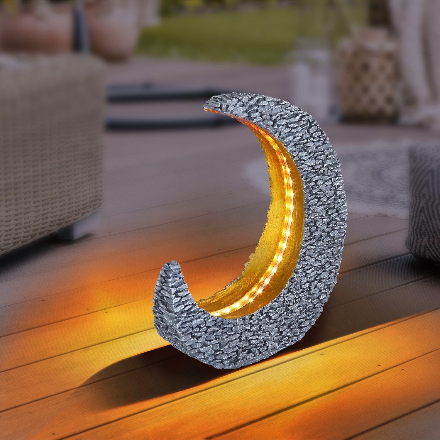 Diese sichelförmige Gartenlampe in Steinoptik eignet sich perfekt für Ihre Terrasse oder Ihren Garten.