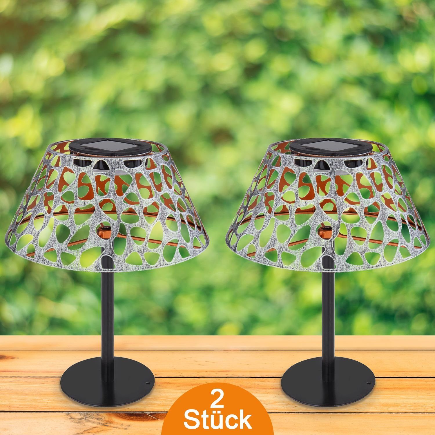 2er Set Solarlampe mit Metallschirm und Dekorstanzungen