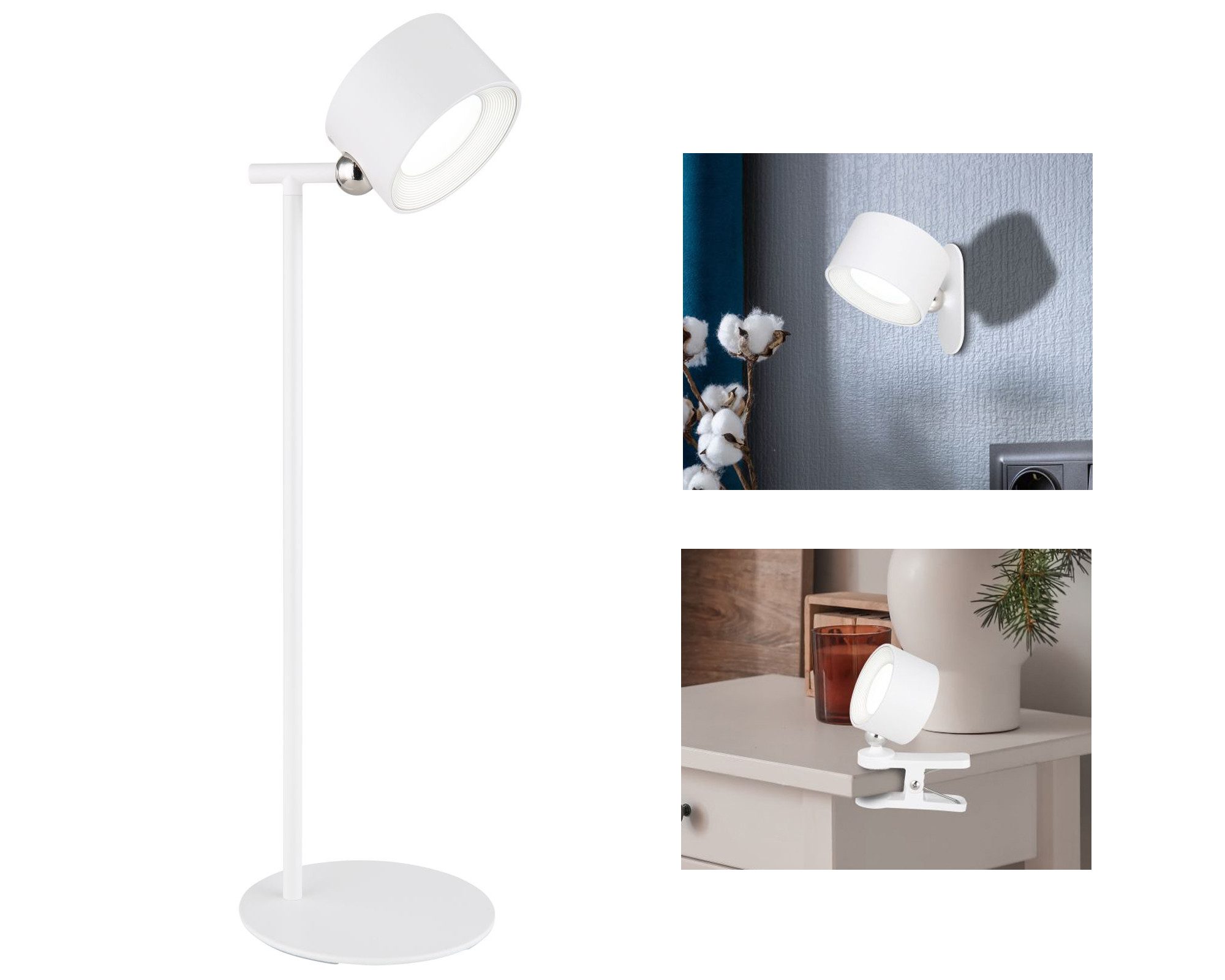 Wissenswertes | Die kabellose Akkuleuchte in mattem Weiß ist nicht nur eine elegante Ergänzung für Ihr Zuhause, sondern auch äußerst funktional. Entdecken Sie die Vielseitigkeit der weißen LED-Tischlampe mit vier flexiblen Montagemöglichkeiten und magnetischer Befestigung: Taschenlampe: Ideal für unterwegs, haftet dank Magnet an metallischen Oberflächen. Tischleuchte: Stabiler Halt auf Tischen, flexibel ausrichtbar für perfekte Beleuchtung. Klemmleuchte: Befestigen Sie die Akkuleuchte an Tischkanten oder Regalen, perfekt für kleine Räume. Wandleuchte: Schaffen Sie einen festen Beleuchtungspunkt an der Wand. Energieeffiziente LED-Technologie, mehrere Helligkeitsstufen und modernes Design machen diese Lampe zur optimalen Lösung für individuelle Beleuchtungsbedürfnisse. |