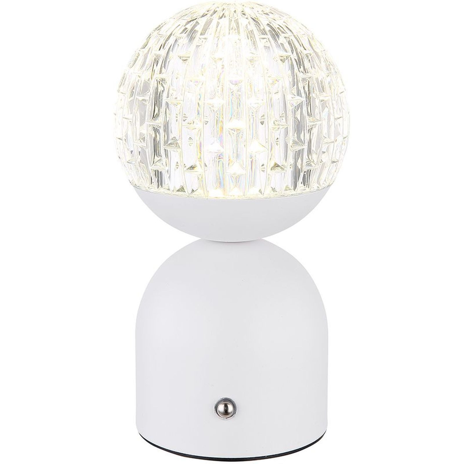 Die kabellose Nachttischlampe in mattem Weißist nicht nur eine elegante Ergänzung für Ihr Zuhause, sondern auch äußerst funktional. Die Akkulampe besteht aus hochwertigem matten Metall in weiß, kombiniert mit klaren Acryl mit funkelnden Kristalleffekt für ein ansprechendes Design.