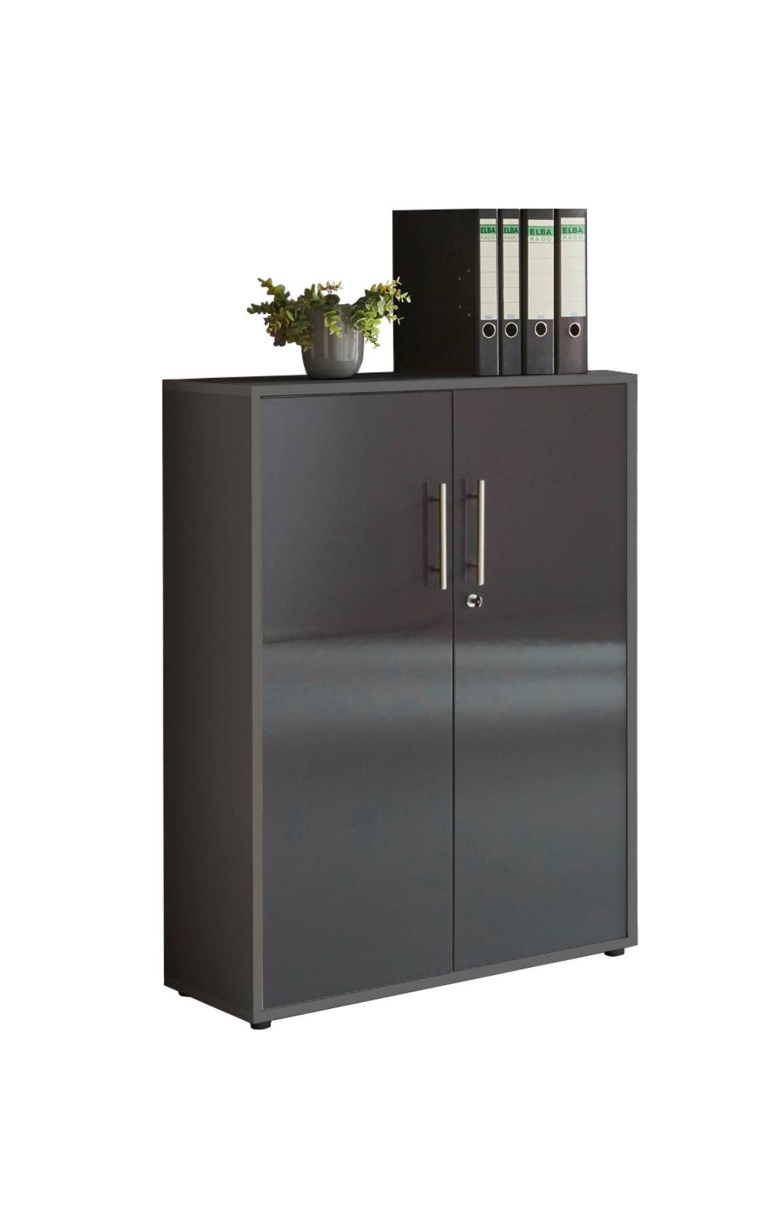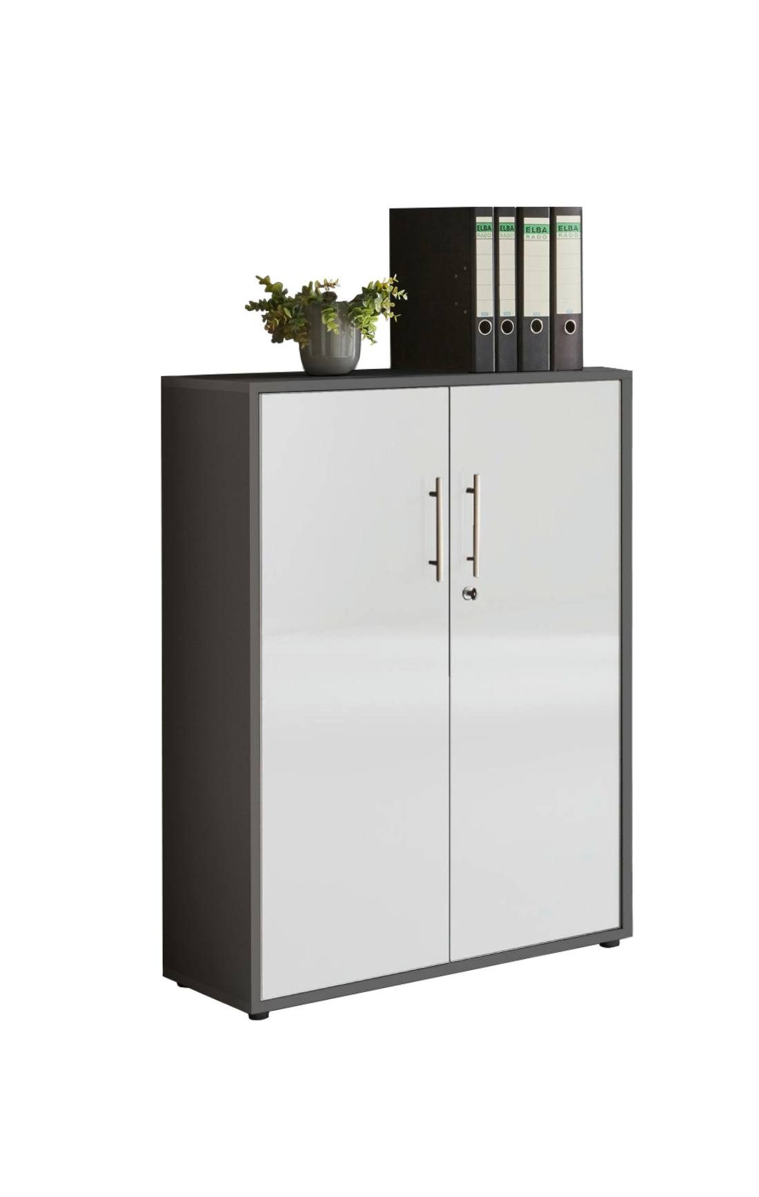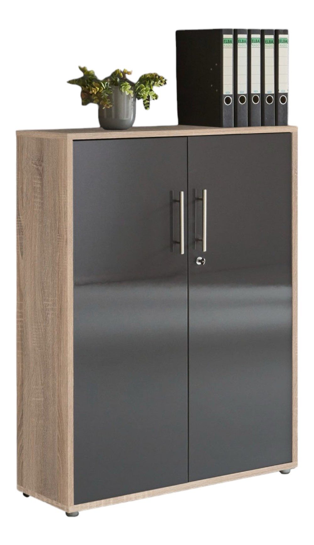 Die Office Edition bringt eine frische und moderne Atmosphäre in jedes Büro oder Arbeitszimmer. Dieser Aktenschrank vereint Funktionalität und stilvolles Design in perfekter Harmonie. Mit den ansprechenden Farbkombination aus Eiche Sonoma und Anthrazit Hochglanz, Lichtgrau, Weiß und Gold Harbor Oak setzt sie in jedem Raum visuelle Akzente, ohne dabei aufdringlich zu wirken. Die natürliche Holzoptik der Eiche Sonoma bringt Wärme und Gemütlichkeit in den Raum, während die hochglänzenden anthrazitfarbenen Elemente für einen modernen und edlen Touch sorgen. Hier findet sich genügend Stauraum für Bücher, Ordner, Büroutensilien sowie Dekorationsartikel. Besonders hervorzuheben sind die verschließbaren Fächer, die persönliche Dokumente oder Wertgegenstände sicher verstauen lassen. Diese Flexibilität macht es zum idealen Möbelstück für das moderne Home Office, das Arbeitszimmer oder auch als elegante Lösung für das Wohnzimmer. Die Verarbeitung der Office Edition spricht ebenso für sich. Hochwertige Materialien und eine sorgfältige Verarbeitung garantieren Langlebigkeit und Stabilität. Die Oberflächen sind pflegeleicht und widerstandsfähig, was insbesondere im Arbeitsalltag von Vorteil ist. Die glatten Fronten der Hochglanzelemente lassen sich leicht reinigen und behalten lange ihr ansprechendes Äußeres. Zusammengefasst bietet die Office Edition eine elegante und praktische Lösung für jeden, der Wert auf eine ansprechende Arbeitsatmosphäre mit genügend Stauraum legt. Die Kombination aus modernem Design, flexibler Modulanordnung und hochwertiger Verarbeitung macht dieses Möbelstück zu einer wertvollen Bereicherung für jedes Zuhause oder Büro.