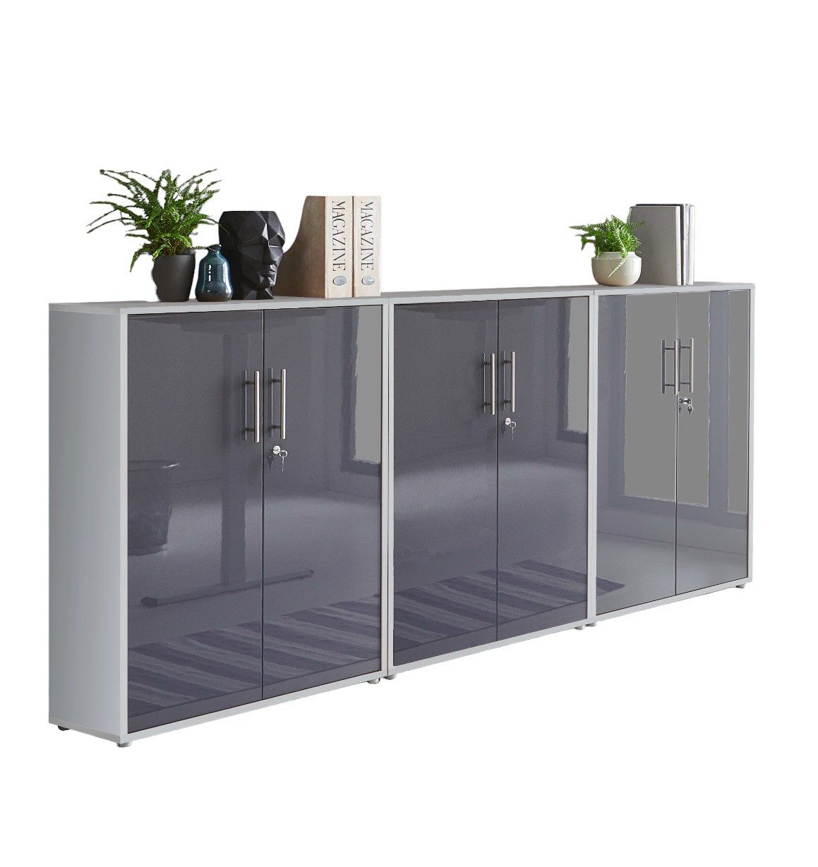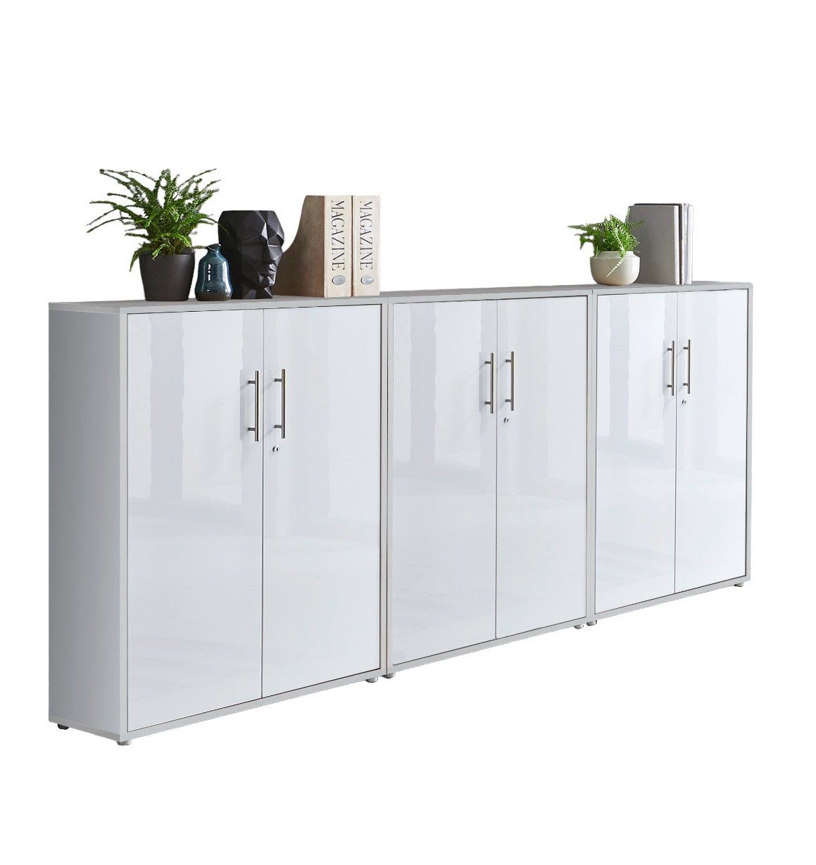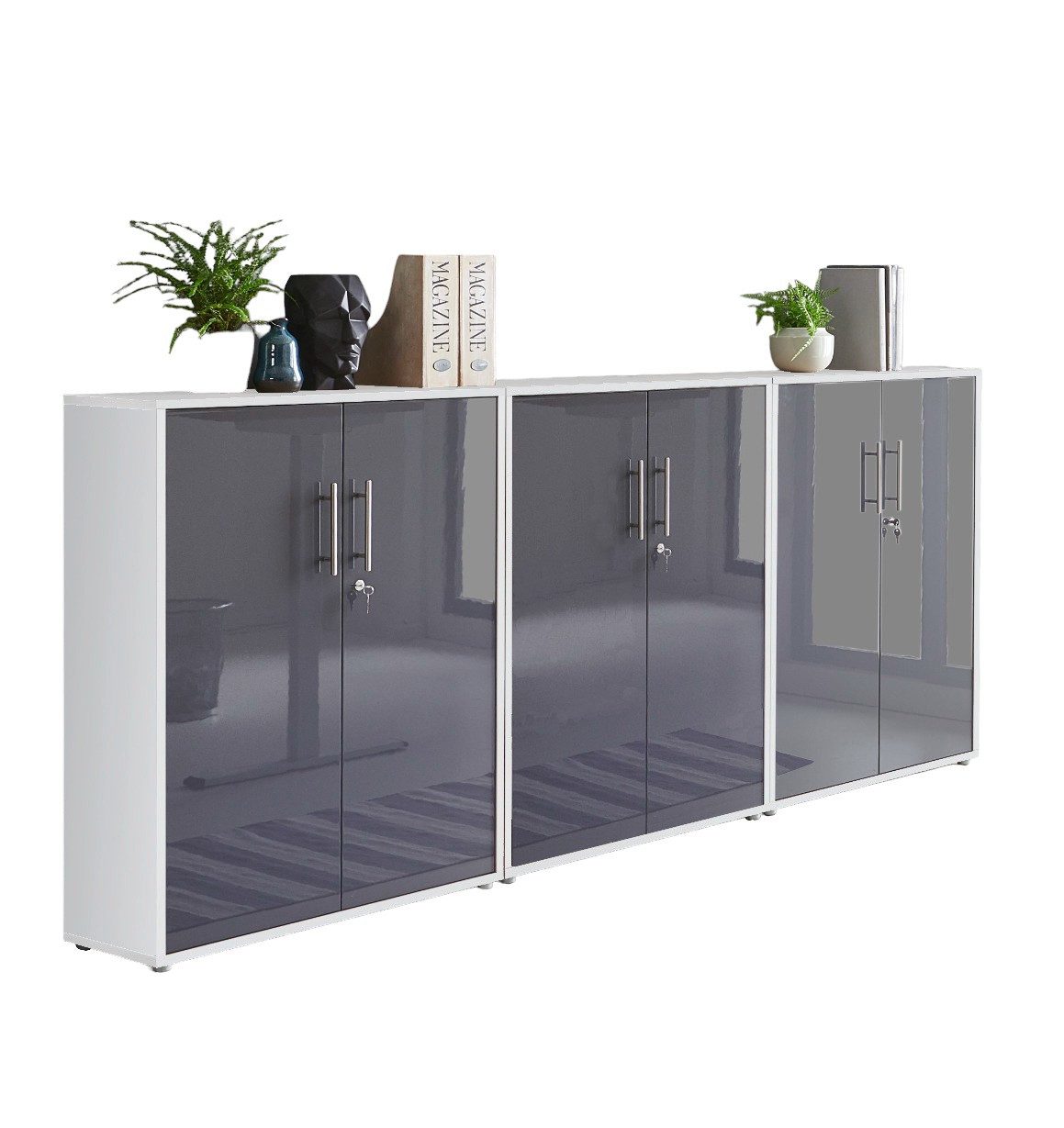 Die BMG Möbel Schrankwand Office Edition 99 verbindet modernes Design mit hoher Funktionalität und sorgt für Ordnung im Büro. Das Set besteht aus drei abschließbaren Aktenschränken, die flexibel einzeln oder als komplette Schrankwand genutzt werden können. Mit einem Gesamtmaß von ca. 253,2 × 113,6 × 33 cm bietet es reichlich Stauraum für Akten, Unterlagen und Büromaterialien.