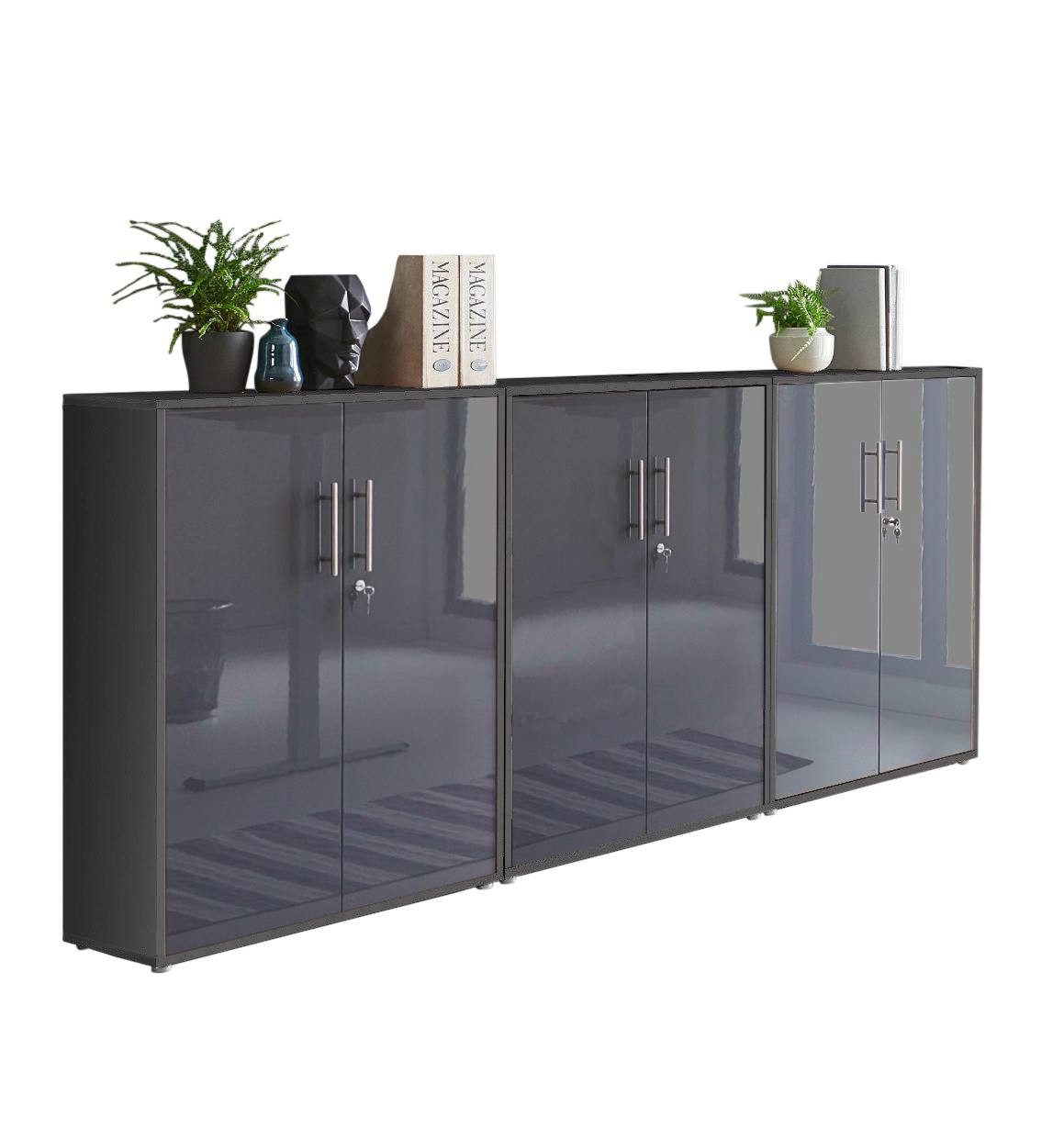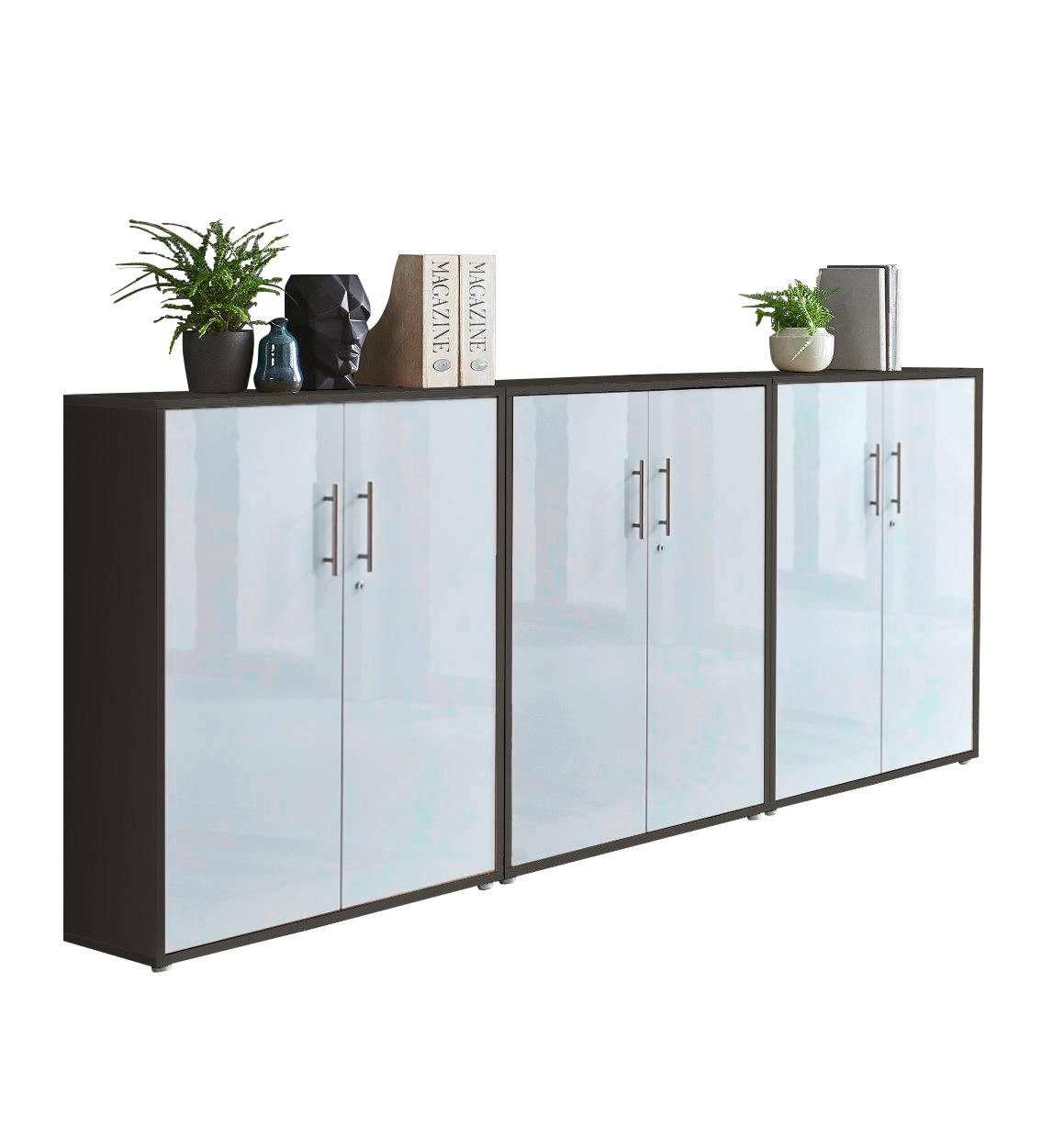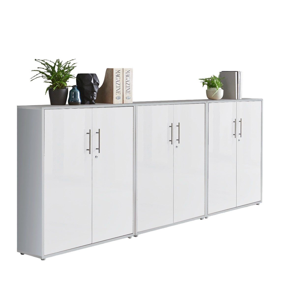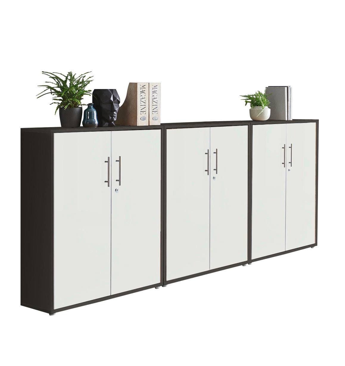 Die BMG Möbel Schrankwand Office Edition 99 verbindet modernes Design mit hoher Funktionalität und sorgt für Ordnung im Büro. Das Set besteht aus drei abschließbaren Aktenschränken, die flexibel einzeln oder als komplette Schrankwand genutzt werden können. Mit einem Gesamtmaß von ca. 253,2 × 113,6 × 33 cm bietet es reichlich Stauraum für Akten, Unterlagen und Büromaterialien.