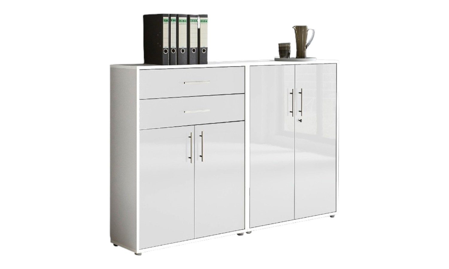 1 breiter niedriger Aktenschrank