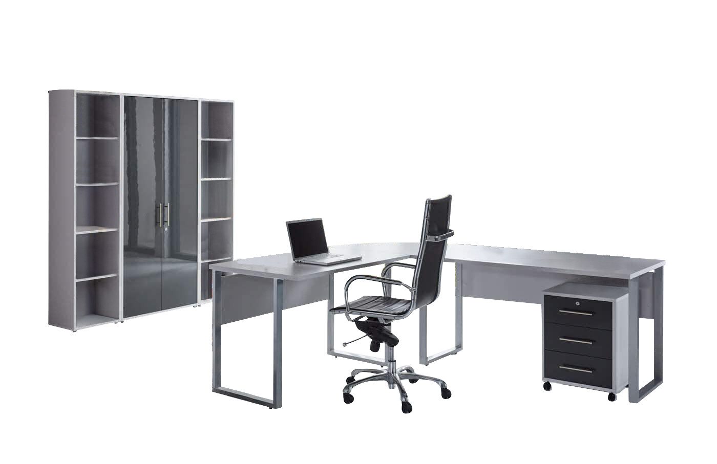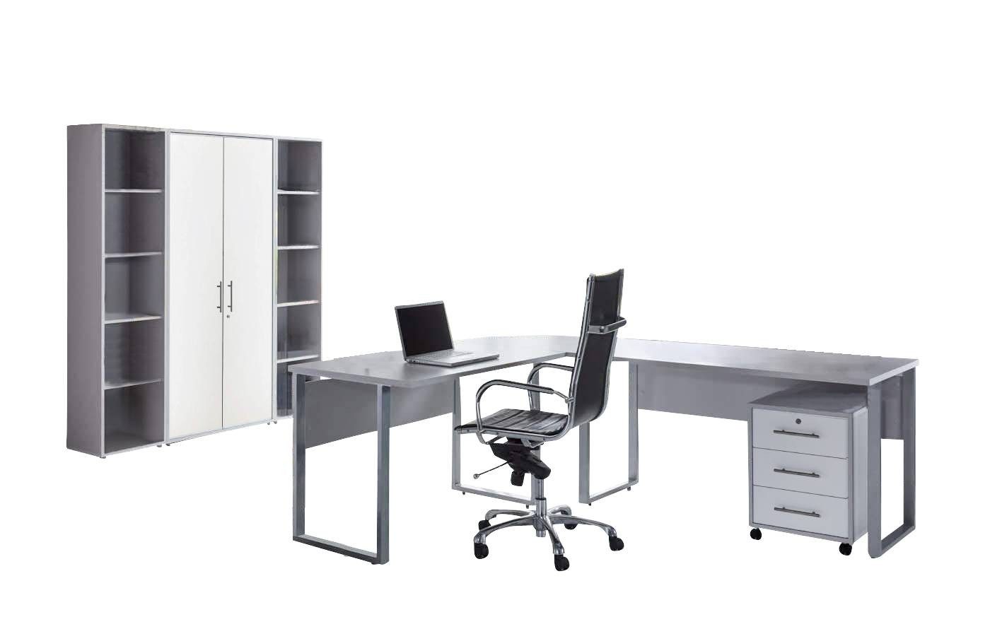 Set beinhaltet | Winkelschreibtisch, Rollcontainer, Aktenschrank. 2 Aktenregale |