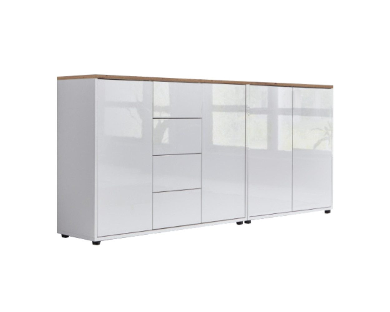 Farbe | Weiß, Weiß Hochglanz mit Oberboden in Artisan Eiche |