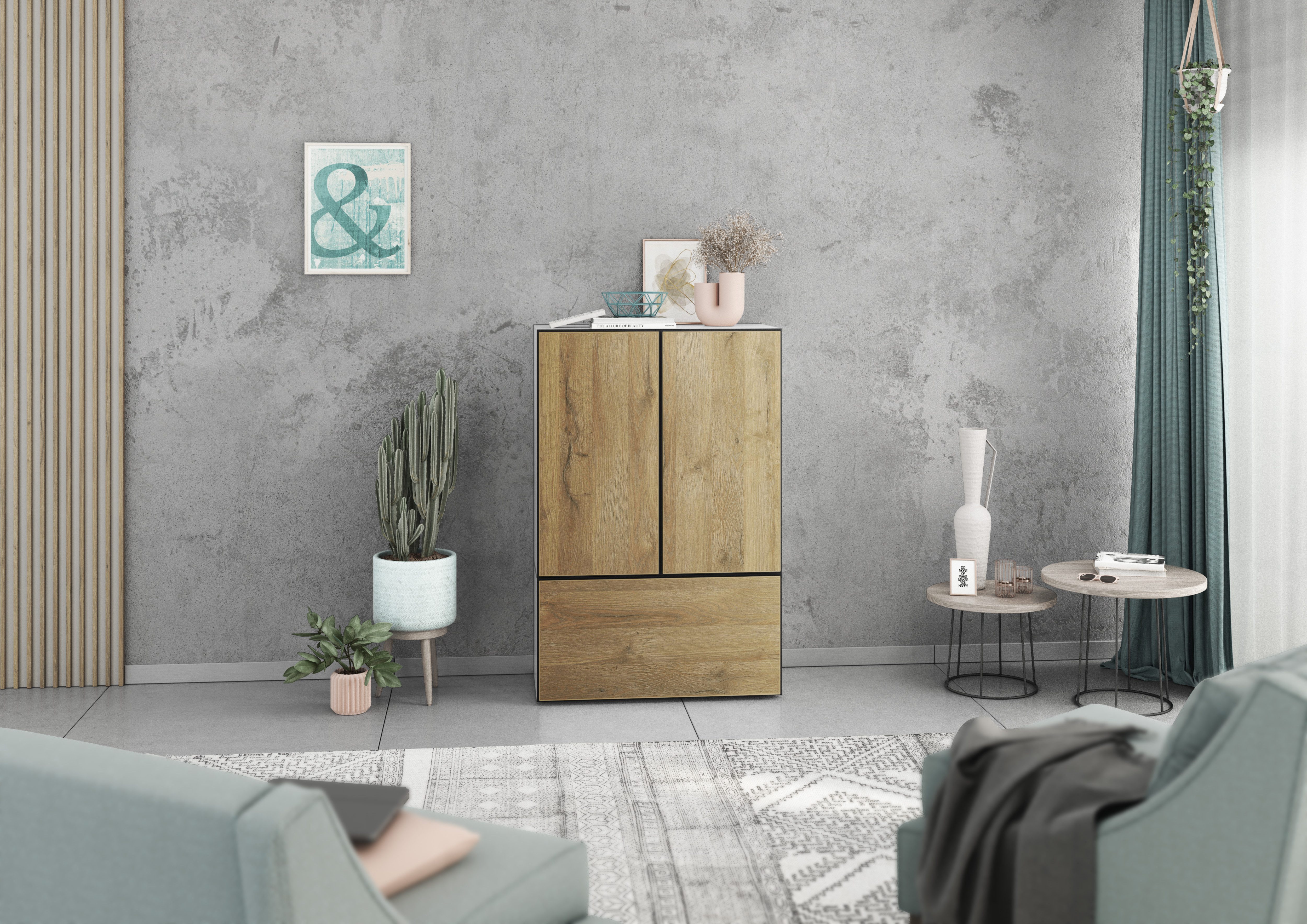 Lieferumfang | 1x Schrank mit Klappenfunktion 2x Schrank mit Tür Bohrschablone |