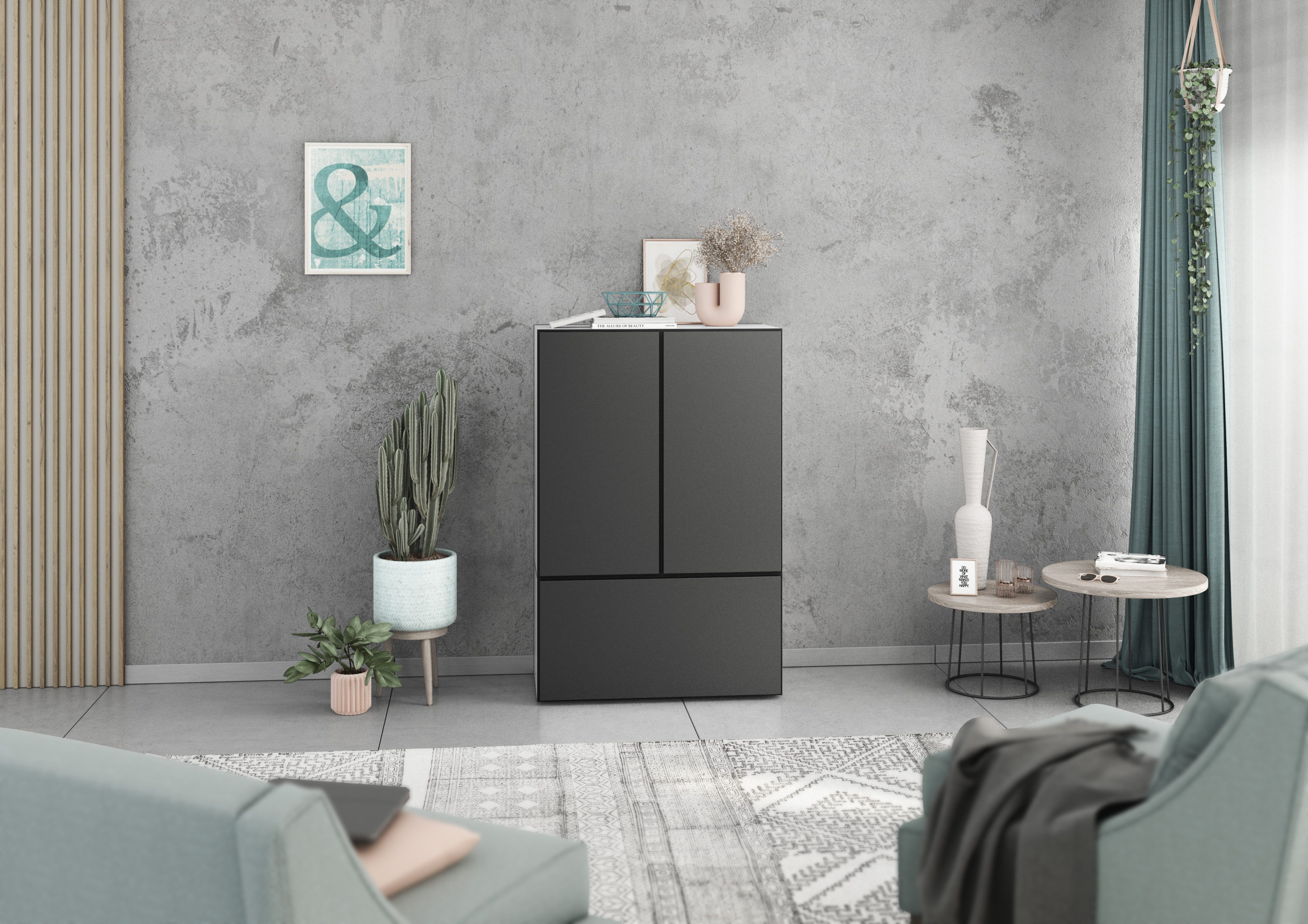 Farbe Türen | Weiß Hochglanz, Schwarz Hochglanz, Evoke Eiche, Matt Weiß |