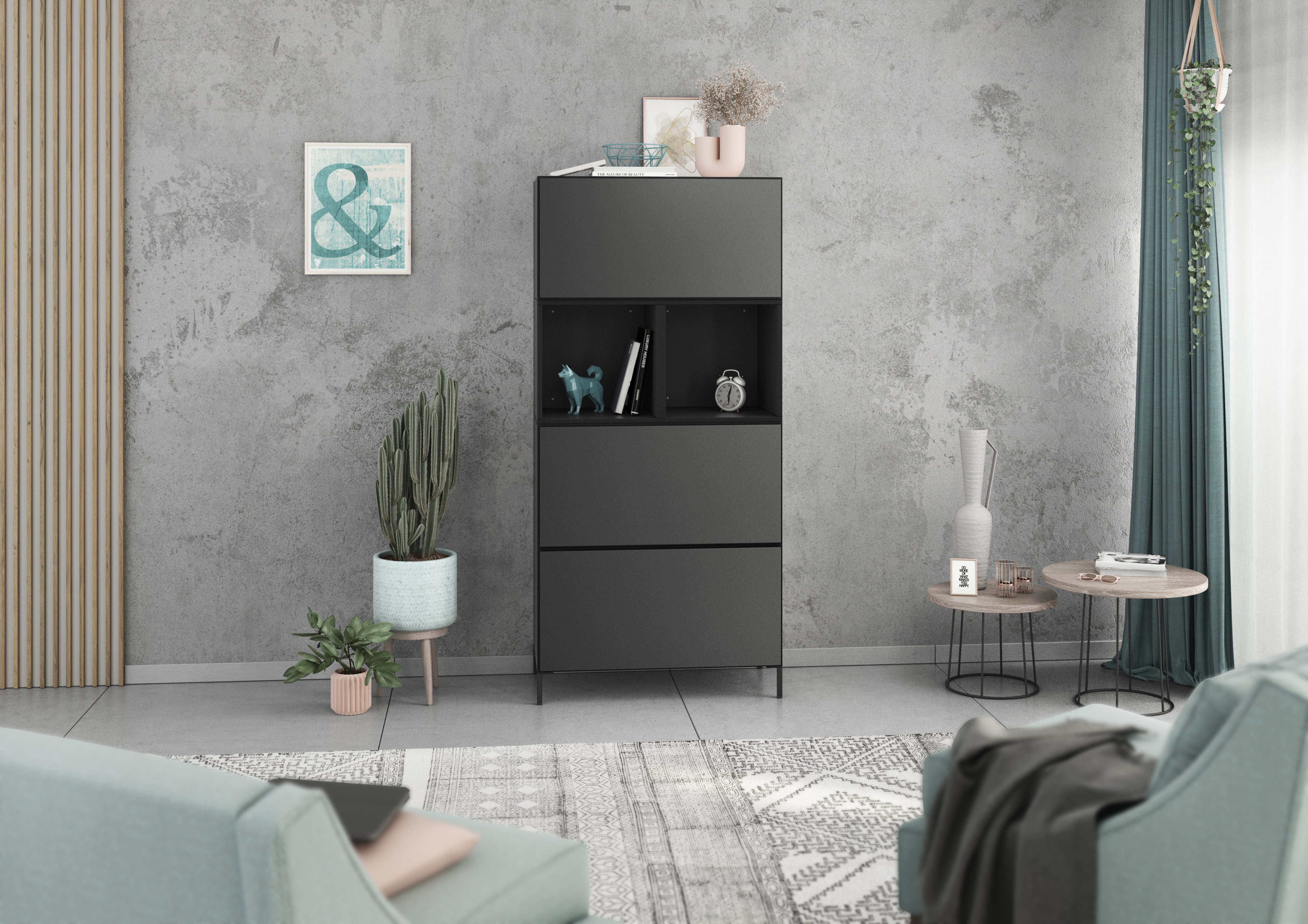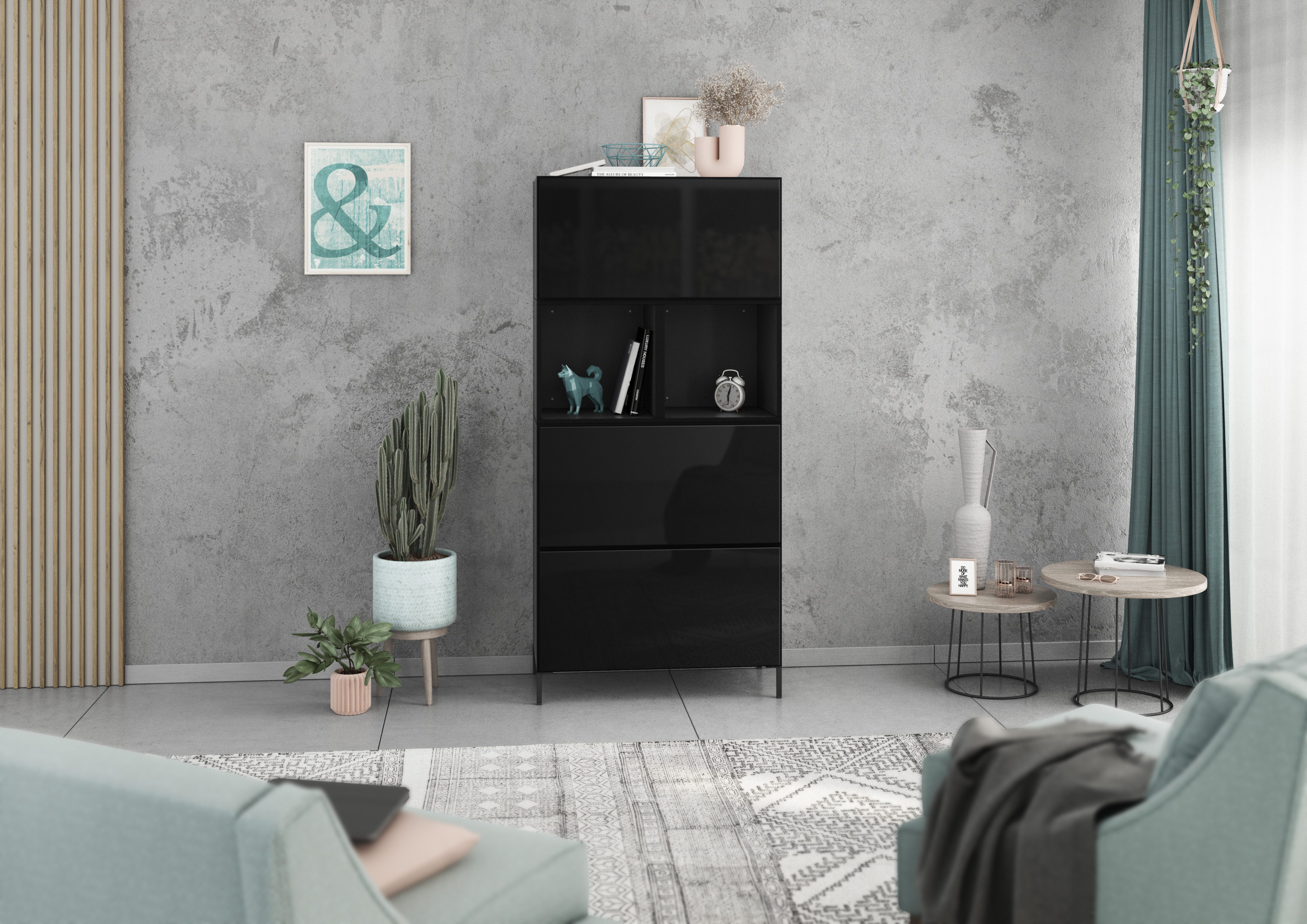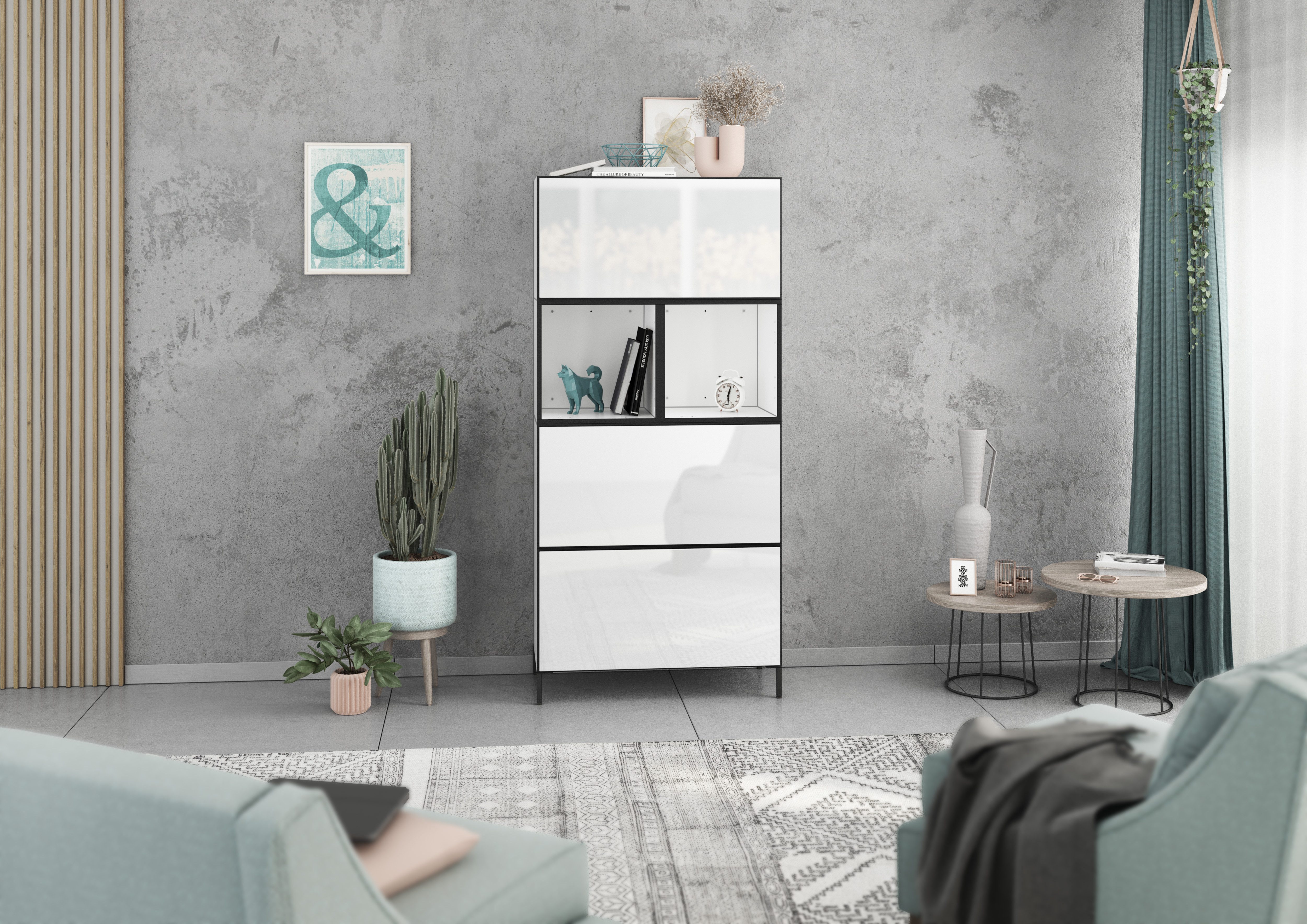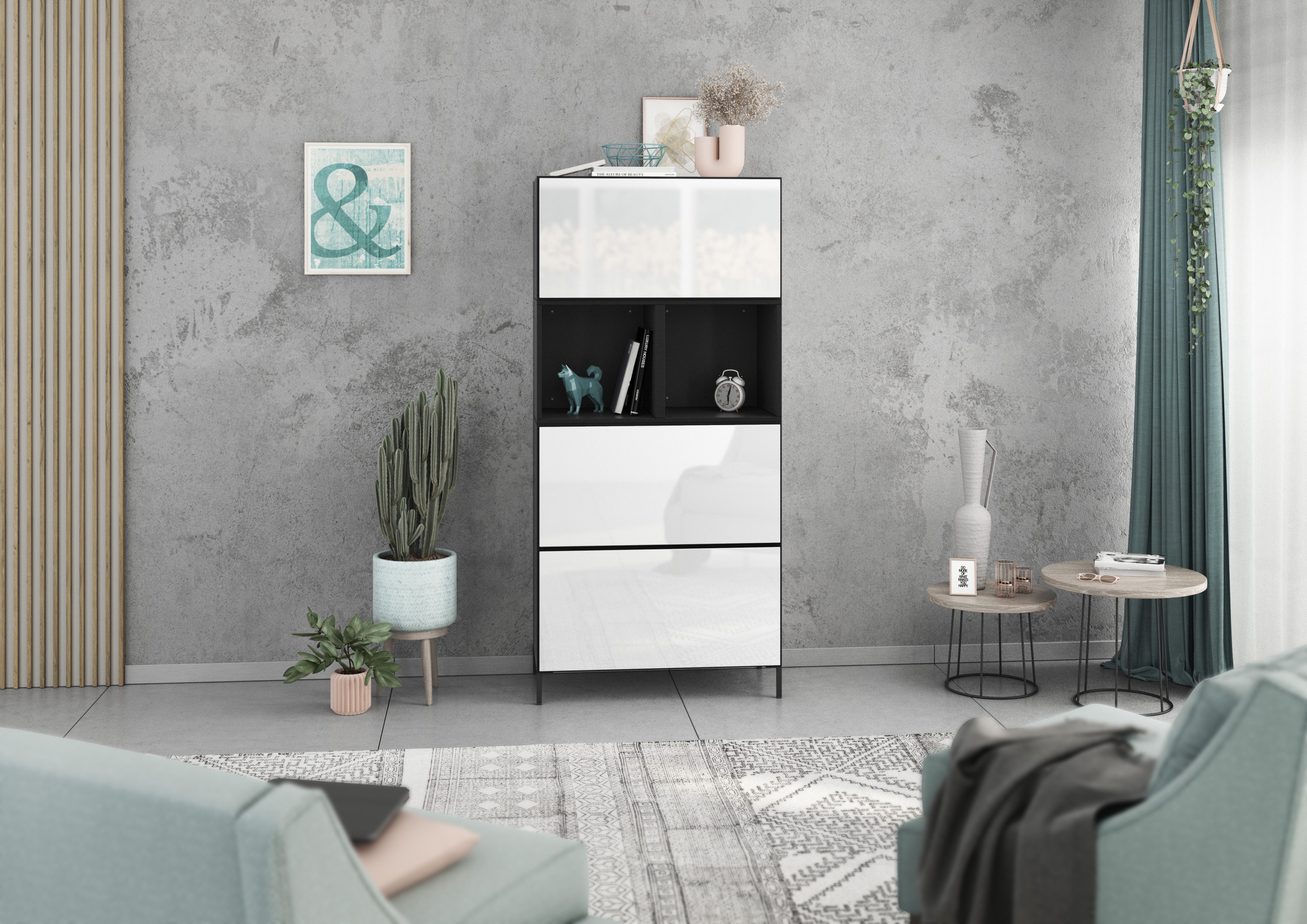 Farbe Klappen | Weiß Hochglanz, Schwarz Hochglanz, Evoke Eiche, Anthrazit Matt |