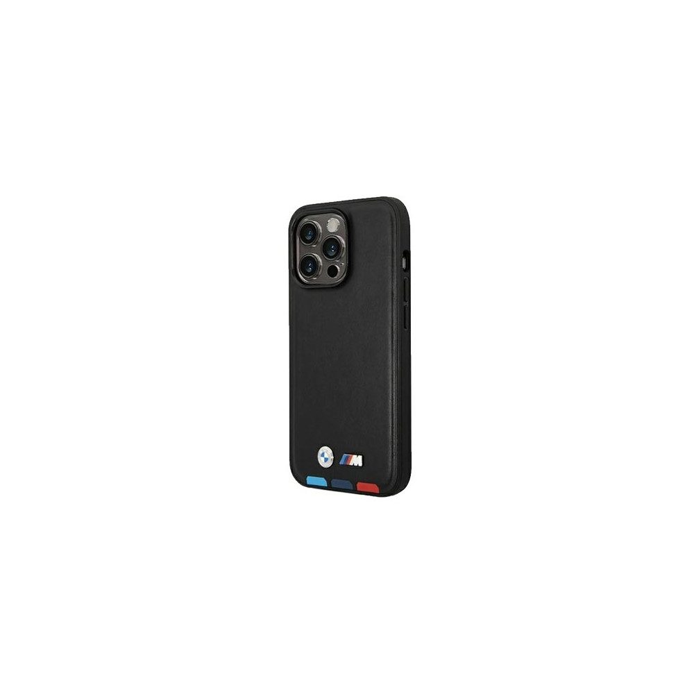 Eigenschaften | Hochwertiges Ledermaterial, Schwarz mit Tricolor-Design, Schützt vor Kratzern und Stößen, Kompatibel mit iPhone 14 Plus, BMW Markenqualität |