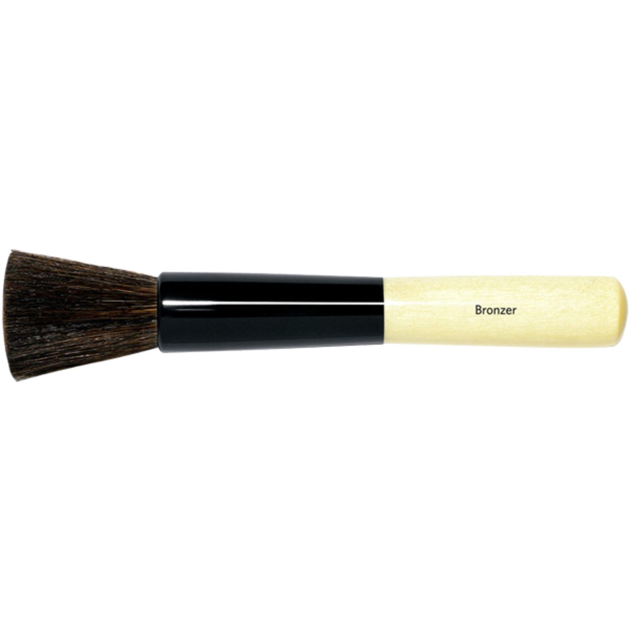 Dicker und voller als ein Rougepinsel, mit flachem Profil. Mit ihm lässt sich Bronzer über Wangen, Stirn, Nase und Kinn verteilen, um der Haut einen warmen Ton zu geben.