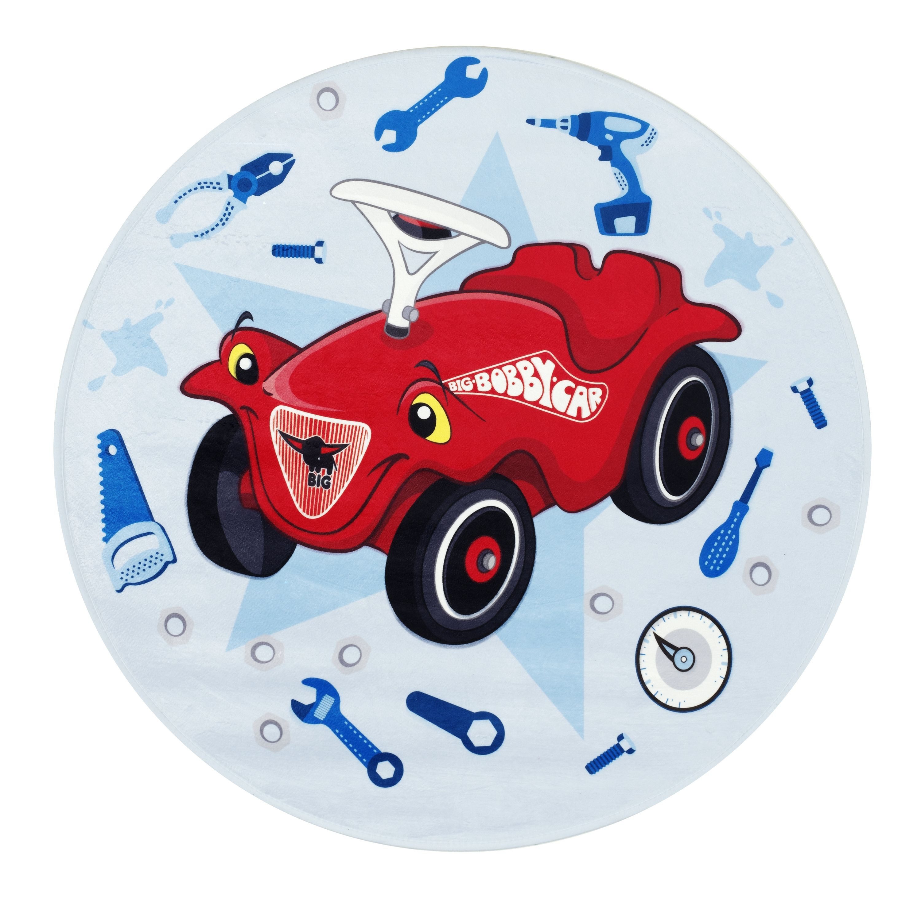 Mit lustigem Bobby Car Motiv zeigt sich dieser weiche Kinderteppich, der mit den fröhlichen Farben Freude ins Kinderzimmer bringt.