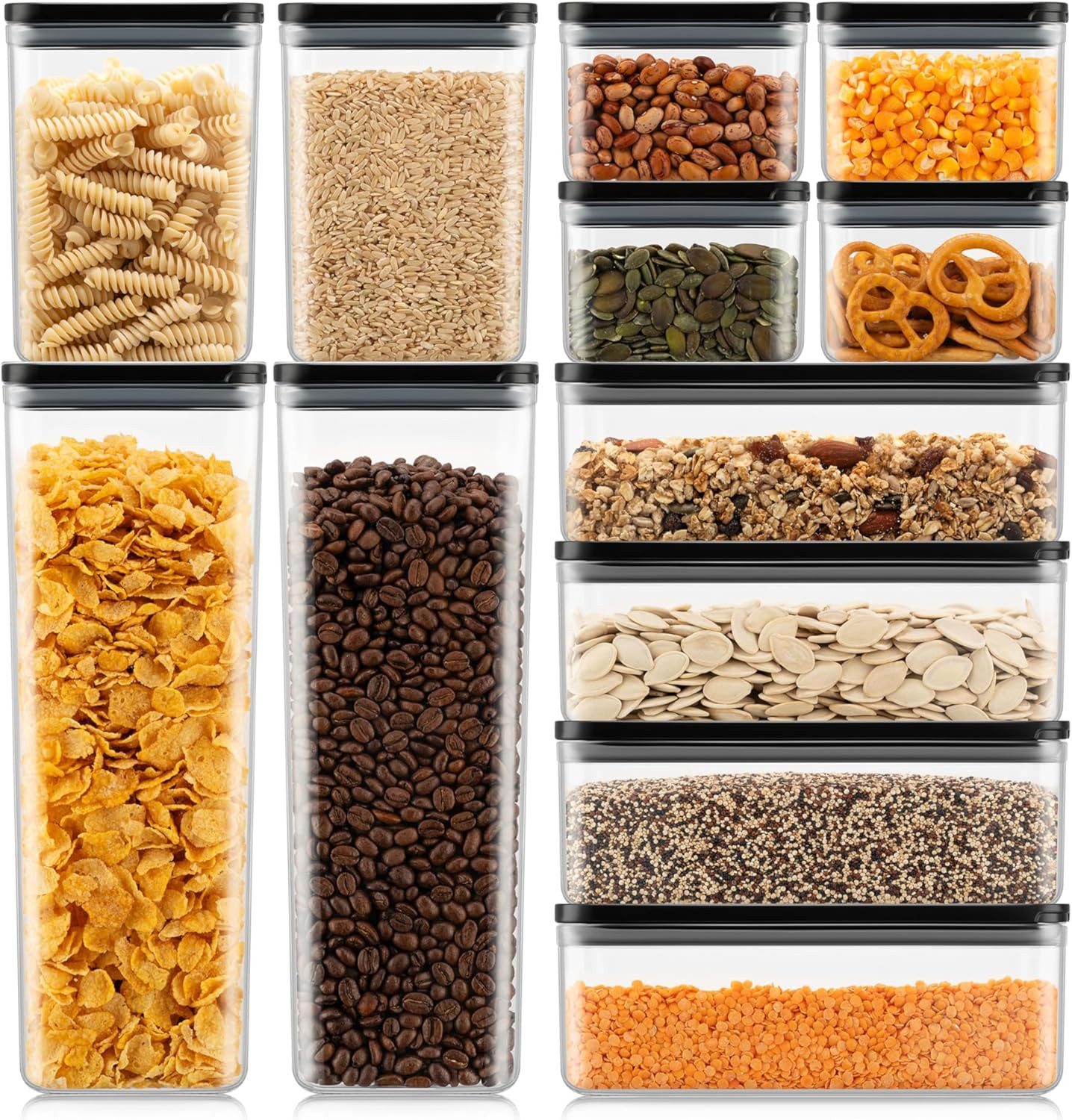 Vielseitige Größen: Das Set enthält eine Auswahl an Größen, die sich perfekt für die Aufbewahrung von trockenen Lebensmitteln wie Nudeln, Reis, Müsli, Mehl, Zucker, Kaffee und vielem mehr eignen.