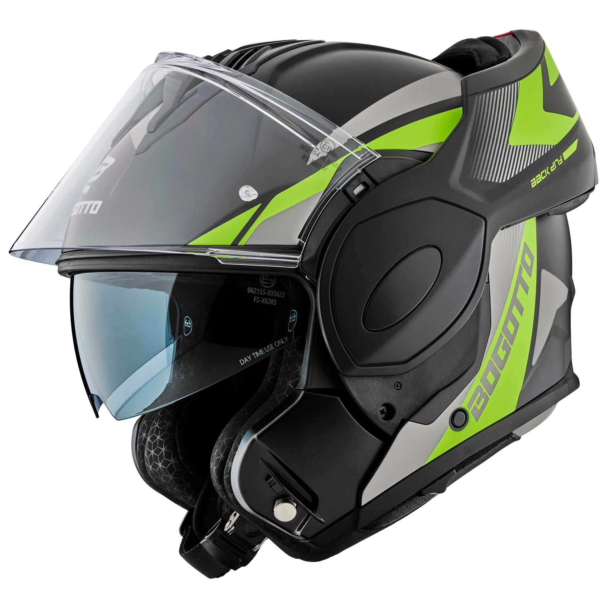 Der Bogotto FS-X600 Atyr Klapphelm vereint Komfort, Funktionalität und Schutz in einem modernen Design. Die robuste ABS-Schale bietet in Kombination mit dem Multi-Density-EPS-Schaumstoff eine optimale Stoßabsorption. Der Helm verfügt über ein klares Visier mit Pinlock-Vorbereitung und ein integriertes Sonnenvisier, das für beste Sichtverhältnisse bei unterschiedlichen Lichtverhältnissen sorgt. Die effiziente Belüftung über Kinn und Oberkopf sowie Luftauslässe am Hinterkopf garantieren ein angenehmes Helmklima. Der verstärkte Kinnriemen mit Ratschenverschluss sorgt für einen sicheren Sitz. Zudem ist das Innenfutter herausnehmbar und waschbar. Der Helm kann einhändig aufgeklappt werden und ist Bluetooth-vorbereitet, sodass Kommunikationssysteme problemlos integriert werden können.