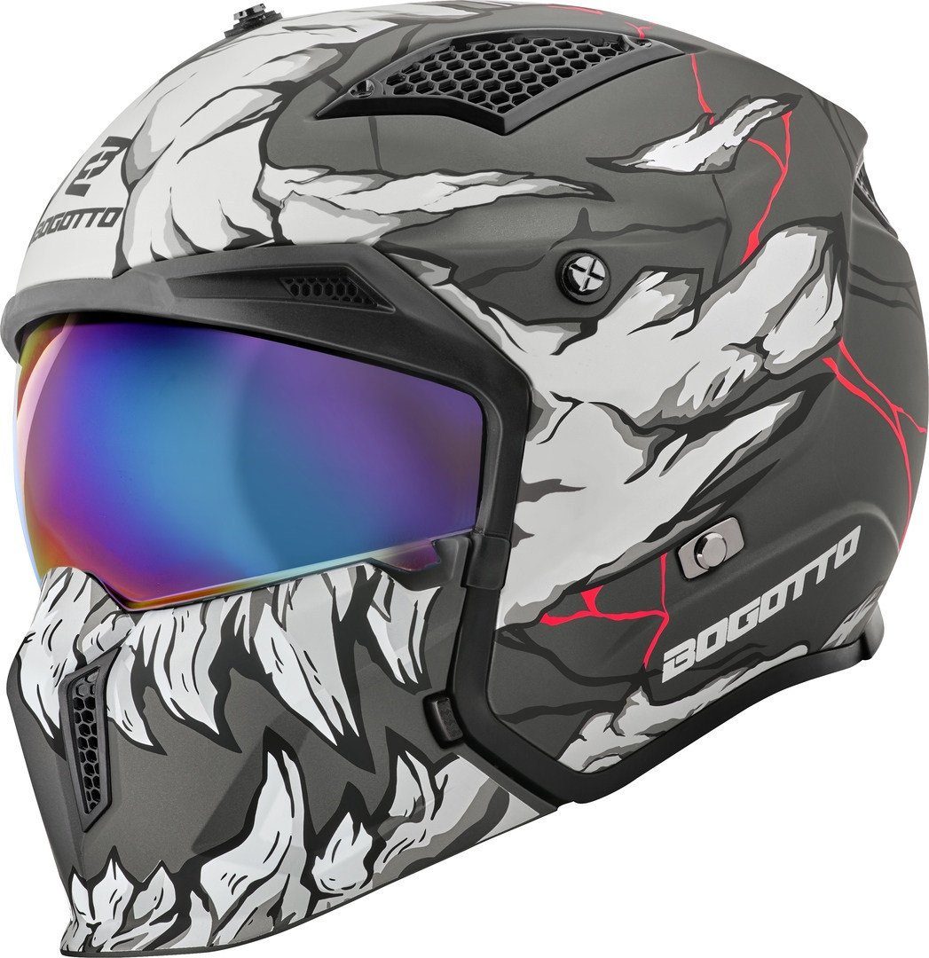 Der Bogotto Radic besticht durch sein praktisches Handling und die hochwertige Ausstattung. Das Visier gibt dir die Freiheit, zu jeder Tageszeit immer perfekt ausgestattet zu sein. Ein angenehmes Tragegefühl verleiht dir die bequeme Helmpolsterung und ausreichend viele Belüftungsöffnungen sorgen dafür, dass du einen kühlen Kopf bewahrst. Mit diesem Helm bist du flexibel und während deiner Fahrten geschützt.