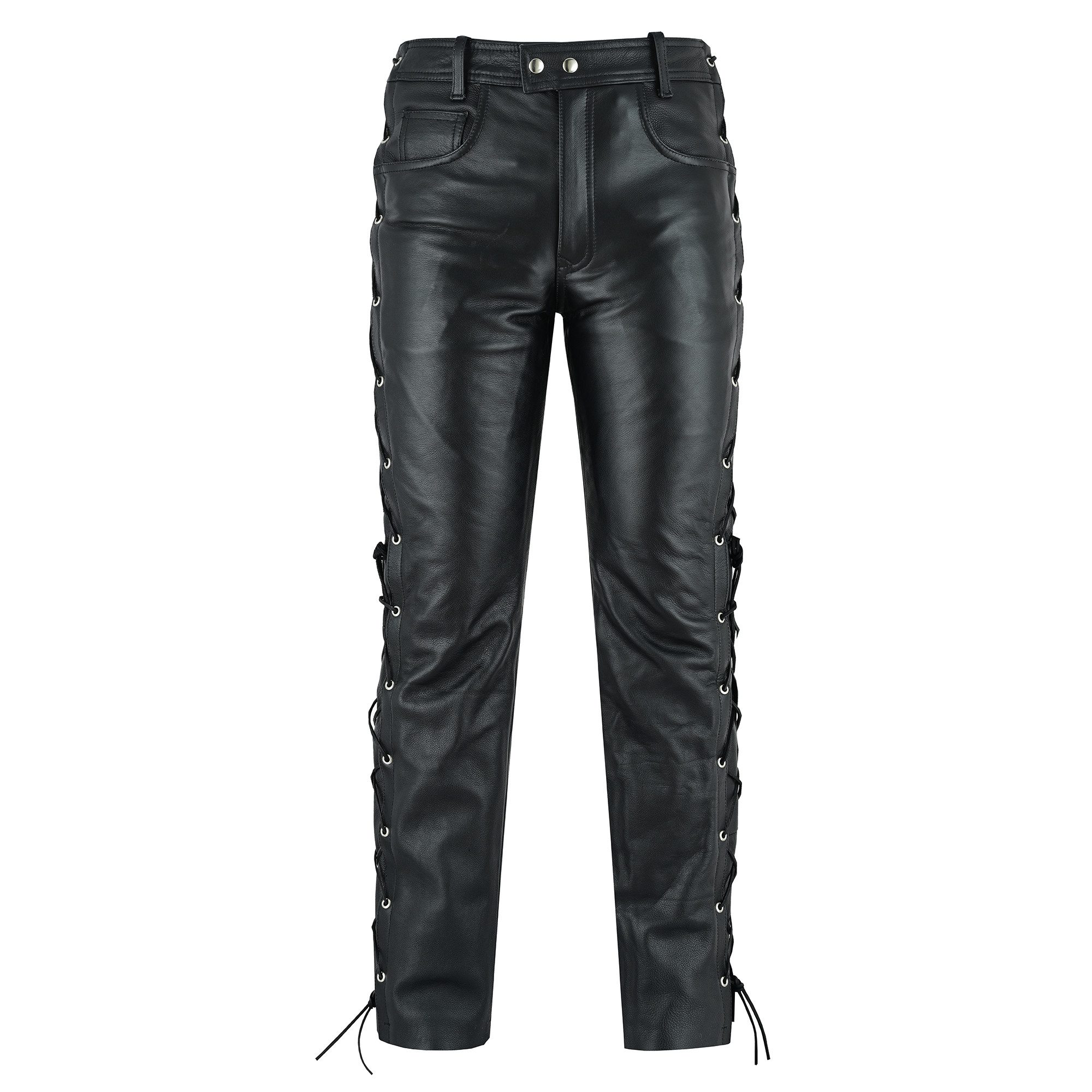Die Bohmberg Herren Lederhose mit seitlicher Schnürung ist ein auffälliges und stilvolles Kleidungsstück aus 100 % echtem Rindsleder. Die Regular -Fit-Hose mit mittlerer Leibhöhe bietet dank des Baumwollinnenfutters einen hohen Tragekomfort. Die Schnürungen an beiden Seiten verleihen der Hose einen einzigartigen Look, während der Reißverschluss für einfaches An- und Ausziehen sorgt. Ideal für Biker und Lederliebhaber.