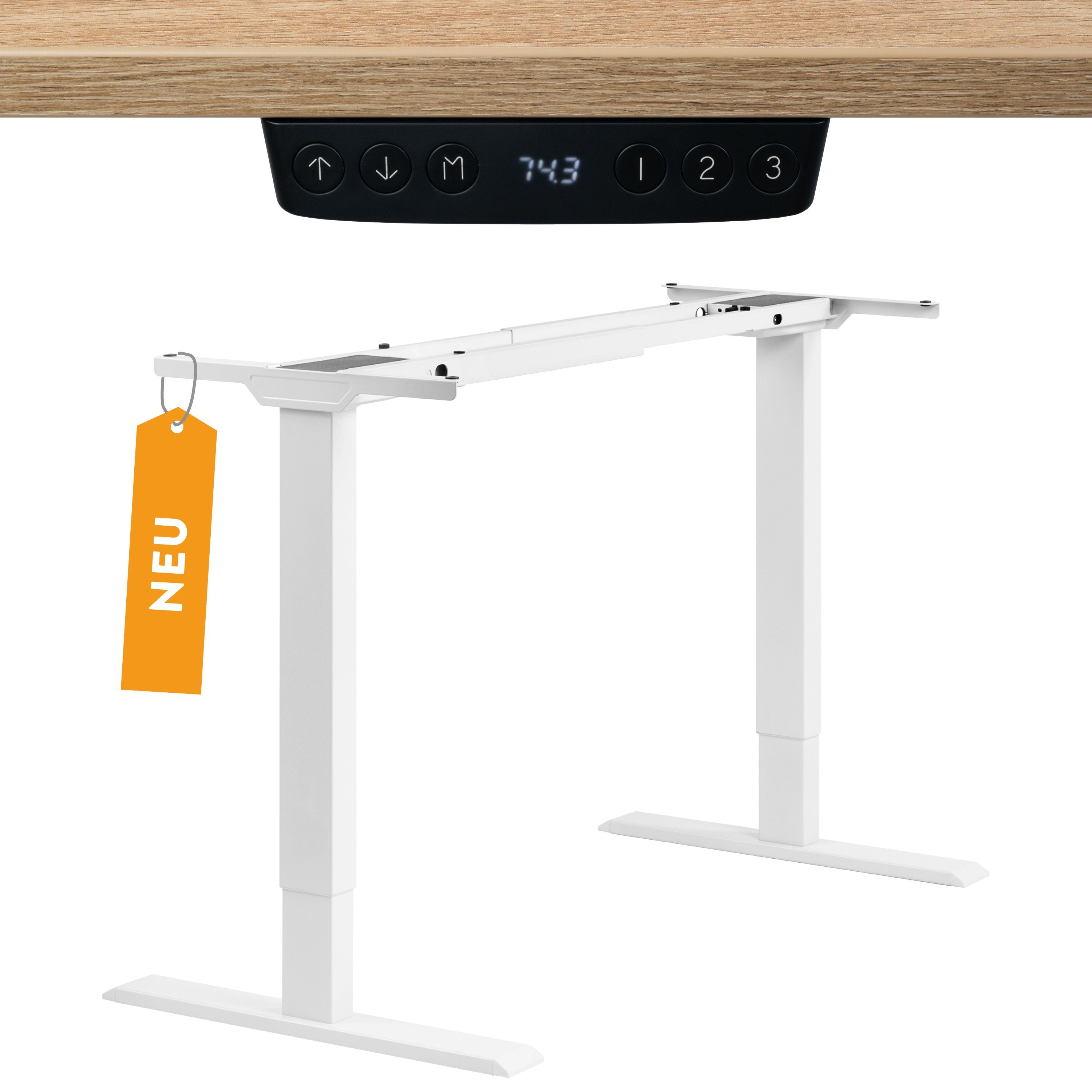 Der Lieferumfang umfasst Gestell, Memoryhandschalter, Montagematerial zur Montage von 25mm starken Schreibtischplatten, Aufbauanleitung, Kollisionssensor